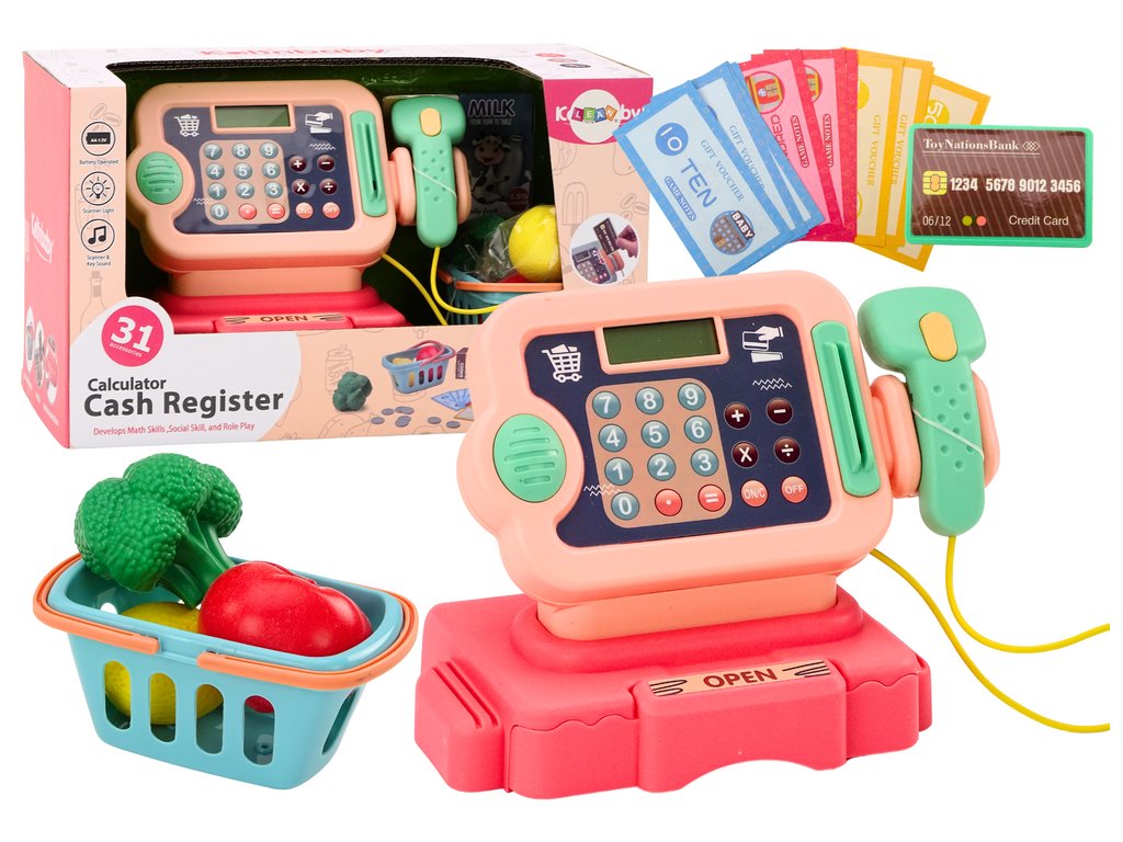 A pénztárgép digitális kijelzővel van felszerelve, amely lehetővé teszi a gyerekek számára, hogy olyan alapvető matematikai műveleteket hajtsanak végre, mint az összeadás, kivonás, szorzás és osztás. Ennek köszönhetően a játék nemcsak szórakoztató, hanem oktató funkciót is betölt, és hozzáférhető és szórakoztató módon segíti a gyerekek matematikai és logikai készségeinek fejlesztését.