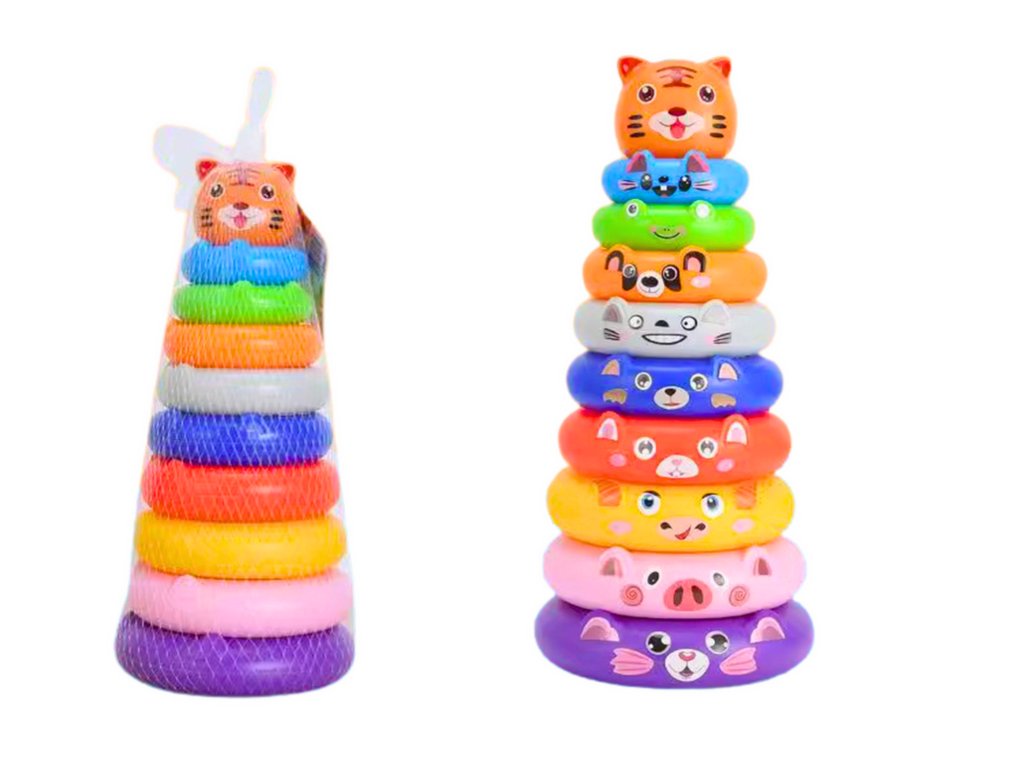 A gyűrűpiramis egy oktató játék, amely támogatja a gyerekek motorikus készségeit és kreativitását. Különböző méretű színes gyűrűk egymásra rakhatók a legnagyobbtól a legkisebbig, ami segíti a logikus gondolkodás és a koordináció fejlesztését. A piramis tetején egy aranyos tigris található, amely vonzó elemet ad a játéknak, és hajtogatásra csábít. Ez a játék ideális ajándék, amely a szórakozást a tanulással ötvözi, és ösztönzi a gyerekek fantáziáját.