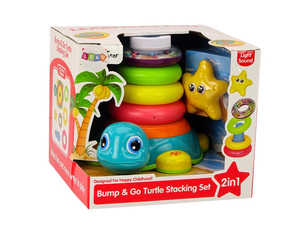 Piramis mozgó teknőssel 2 az 1-ben Összecsukható gyűrűk Fényhangok