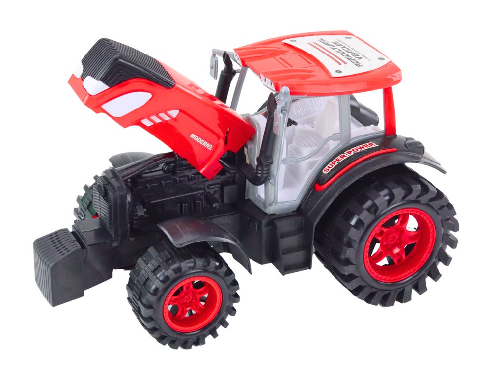 A lenyűgöző piros traktor ideális játék a kis gazdálkodók számára, akik valósághű gazdálkodási szórakozást szeretnének élvezni. A traktor nyitható motorháztetővel, nagy kerekekkel rendelkezik a stabilitásért és hátsókerék-hajtással, ami realizmust és dinamizmust ad a játéknak.