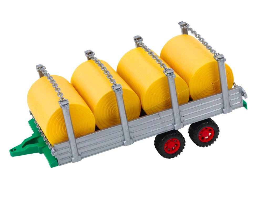 A készlethez tartozik egy szénabálákkal ellátott pótkocsi is, amellyel a gyerekek valódi mezőgazdasági munkát szimulálhatnak. Tökéletes a gépek és a gazdálkodás iránt érdeklődő gyerekek számára, ez a traktor több órányi kreatív és oktató szórakozást kínál.