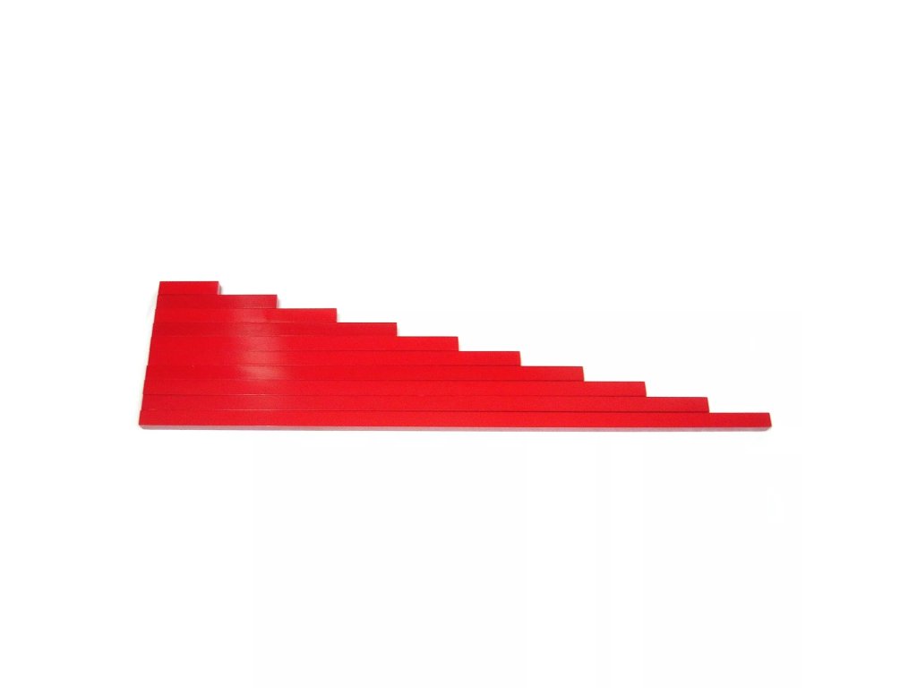 A készlet 10 piros rudat tartalmaz. A legrövidebb rúd 10 cm, és minden további rúd 10 cm-rel hosszabb, egészen a leghosszabb, 100 cm-es rúdig. A rudak keresztmetszete állandó, 2,5 x 2,5 cm.