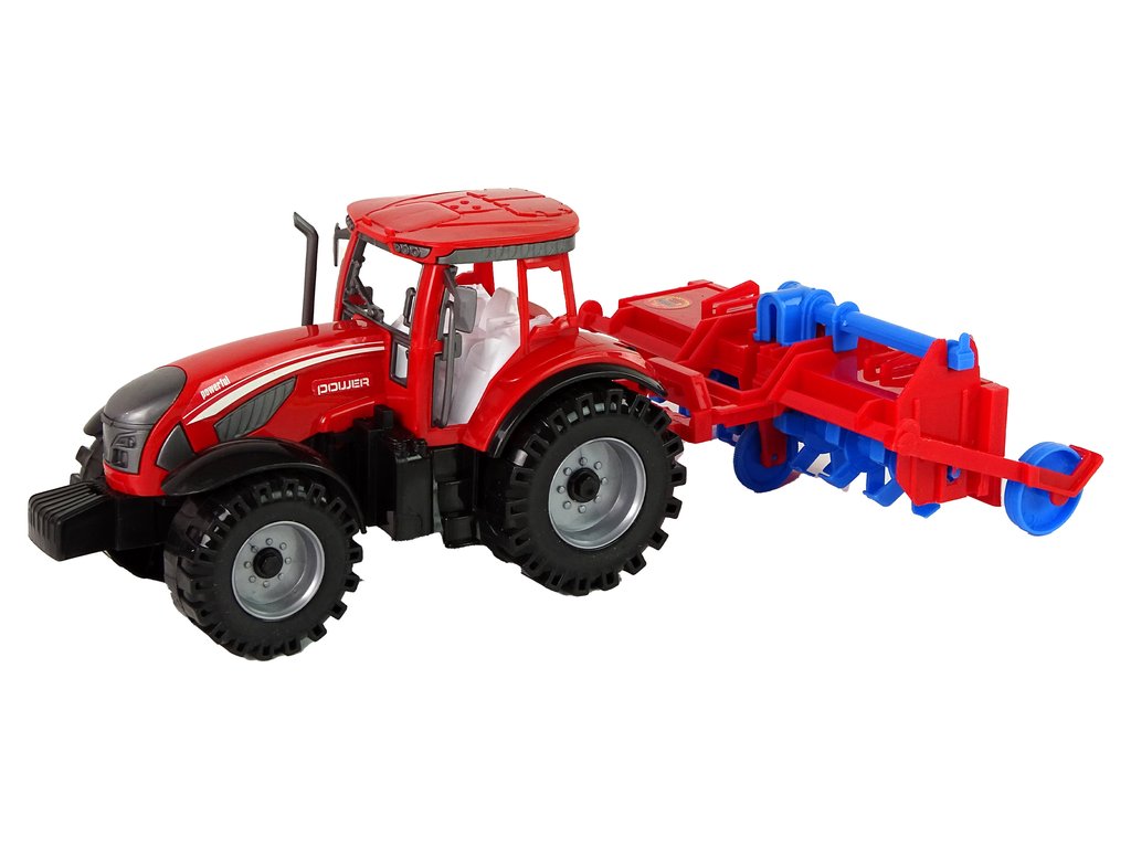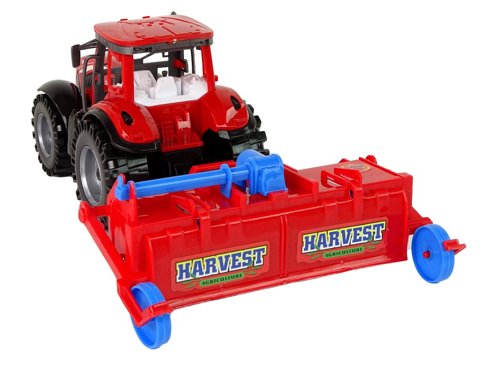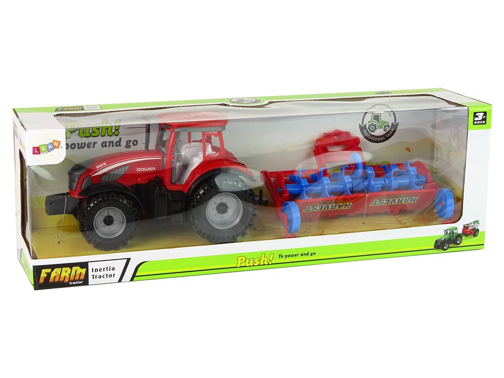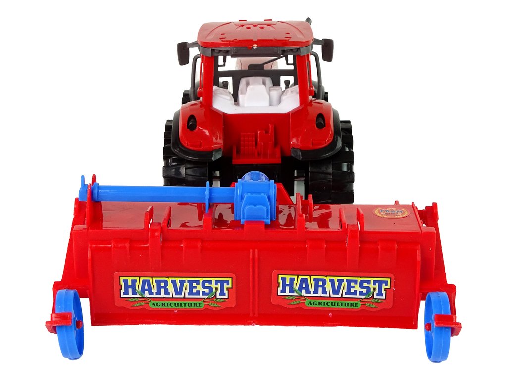 Ez a kiváló minőségű műanyagból készült piros traktor nagyon valósághűnek tűnik, és felkelti a mezőgazdasági gépek kis szerelmeseinek figyelmét. A traktor súrlódó hajtással van felszerelve, amely lehetővé teszi az előre és hátra mozgatást. Vezetés közben az eke alkatrészei mozognak, hiteles hangulatot kölcsönözve a játéknak, és a gyerekek szimulálhatják a szántóföldi munkát.