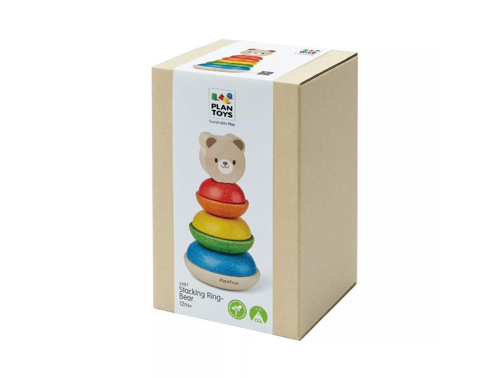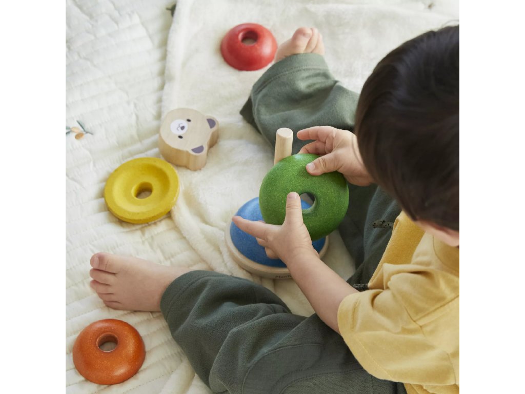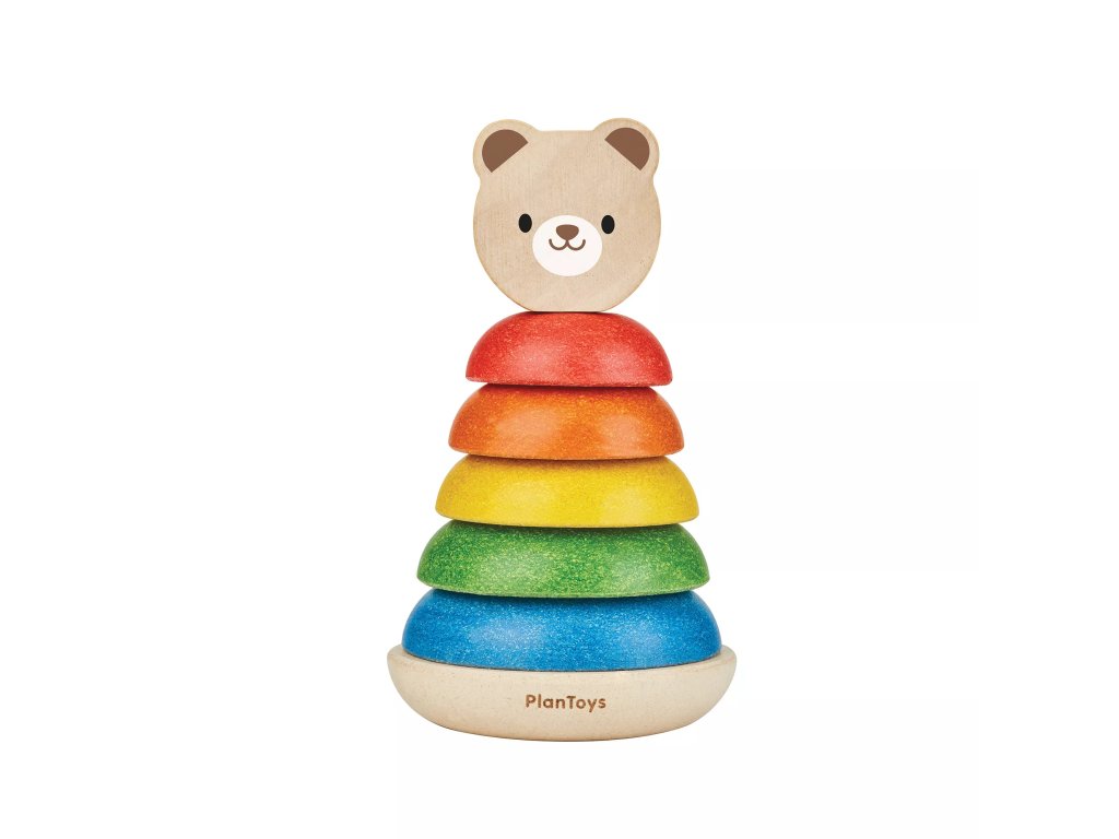 A PlanToys márkájú, gumiból készült, egymásra rakosgatható játék, az Egymásra rakosgatás – medve fejleszti a finommotorikát, a szem-kéz koordinációt és a logikus gondolkodást játékos formában.