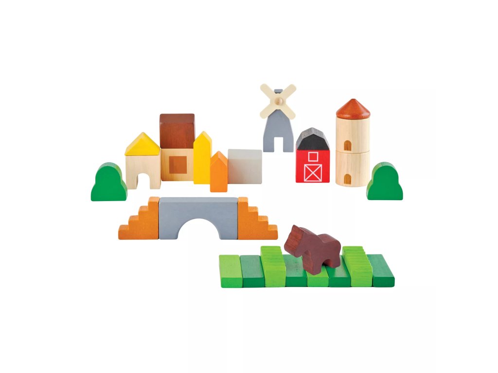 Költözzön vidékre, és építse meg farmját fantáziája szerint. A fa építőkészlet fejleszti a képzeletbeli játékot, a finommotorikát, a koncentrációt és a gyermekek koordinációját.