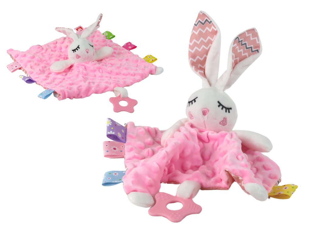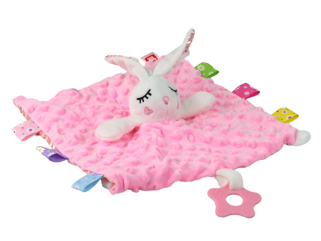 Plüss nyúl - játszójáték, kiálló takaró, fogazó, csörgő