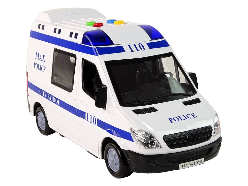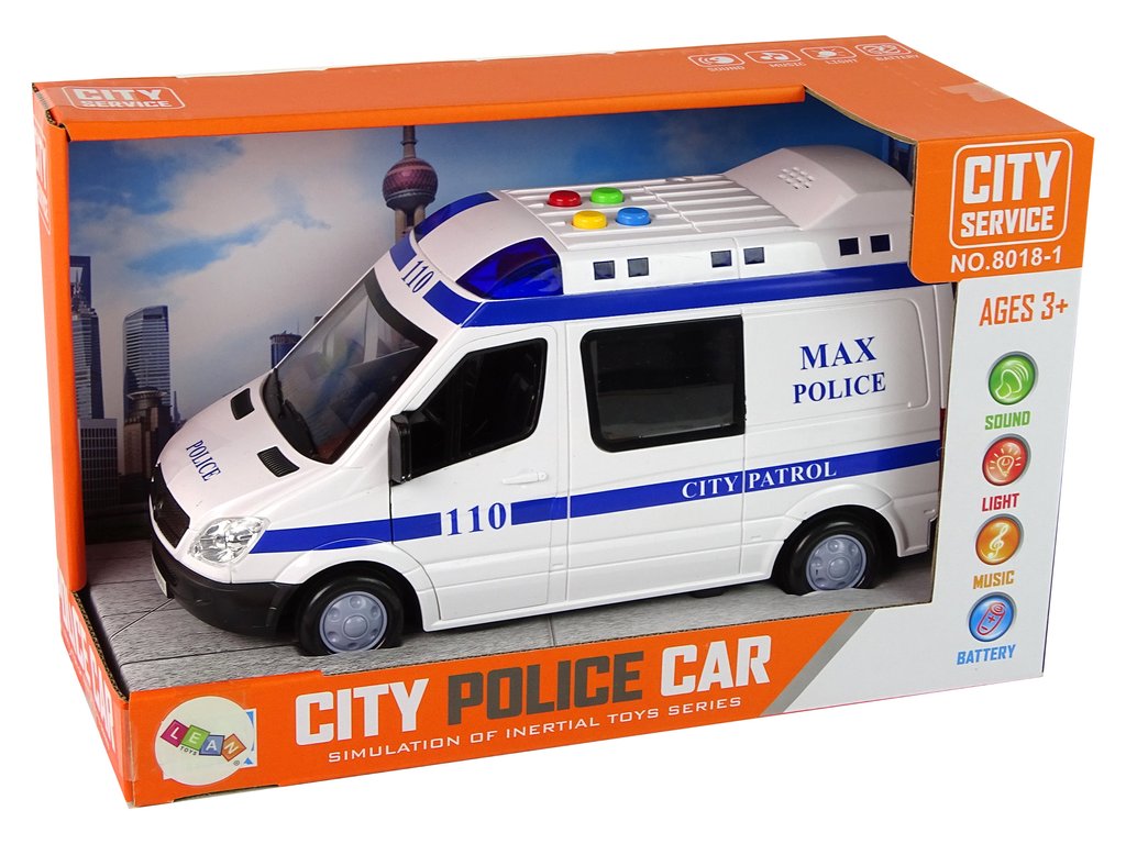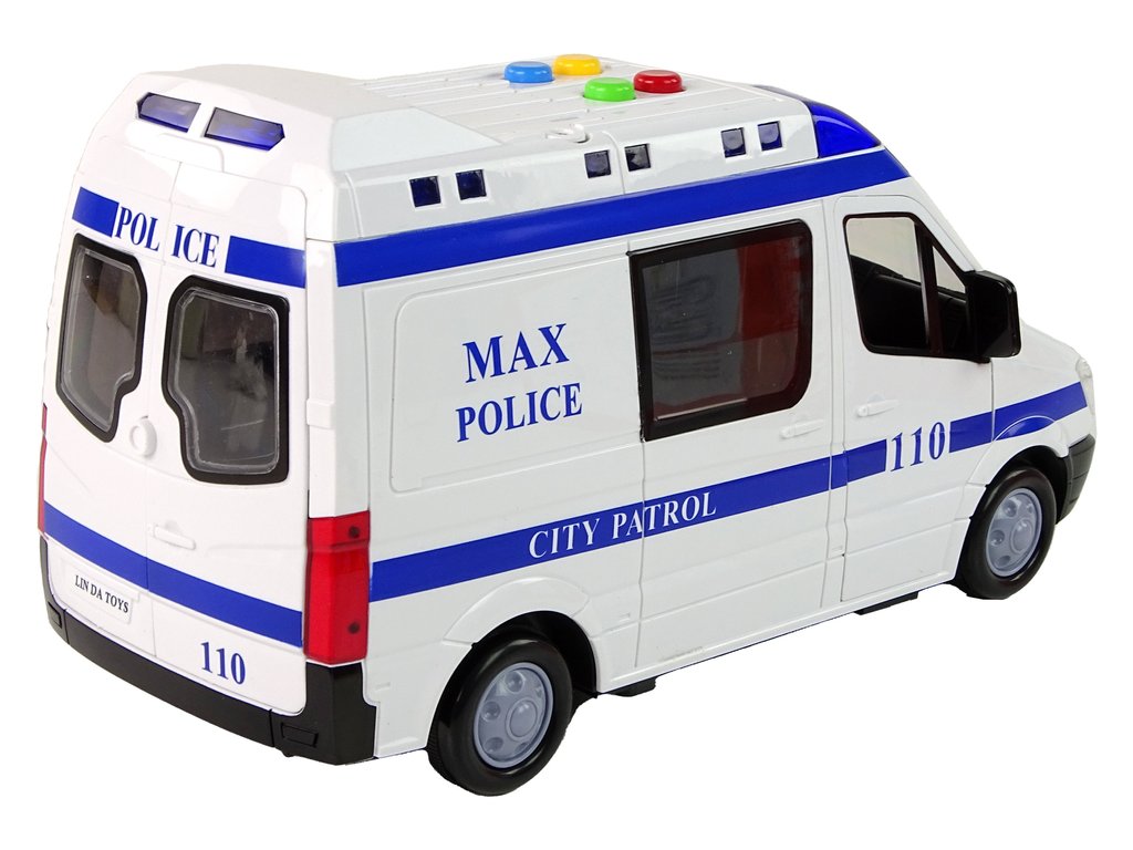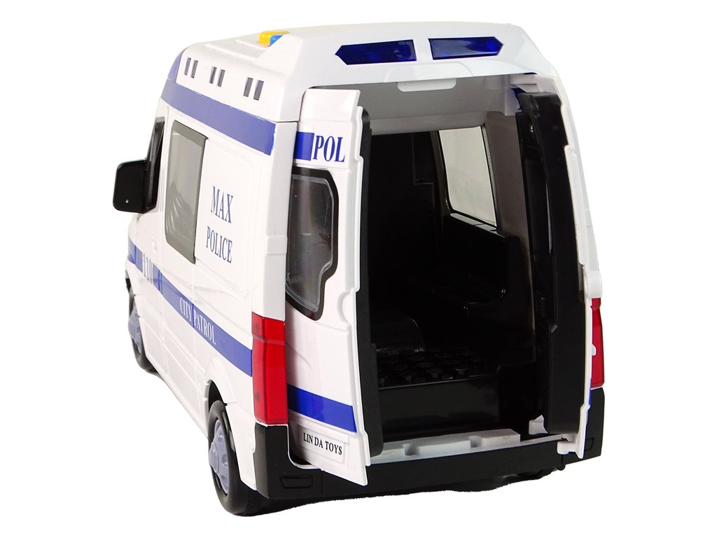 A részletekben hűen reprodukál egy igazi rendőrautót. A mozgó alkatrészek további hozzáadott értéket jelentenek ennek a játéknak. Az első és a hátsó ajtó kinyitható, lehetővé téve a jármű be- és kiszállását, valamint rendőri üldözés megszervezését. A gumikerekek kiváló stabilitást biztosítanak, így az autó sima felületen és egyenetlen terepen is haladhat.