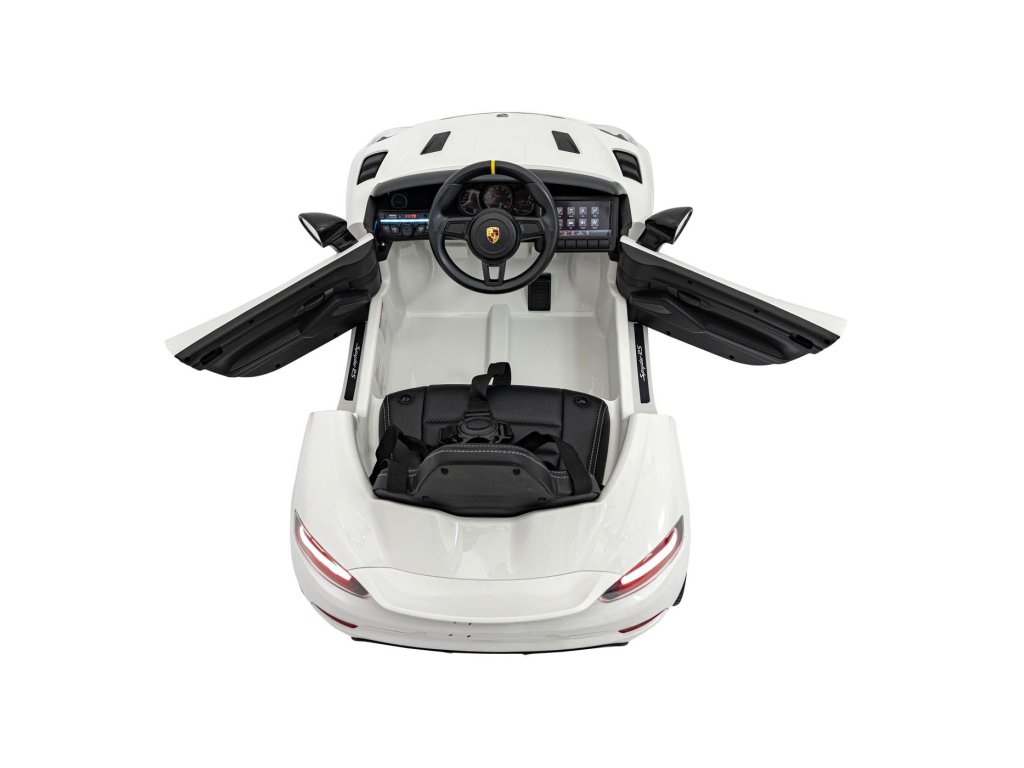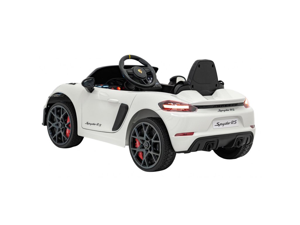A Porsche Spyder RS 718 elektromos autó két 90 W összteljesítményű motorral és egy 12V 7Ah kapacitású akkumulátorral rendelkezik. Az EVA hab kerekek és az ökológiai bőrrel borított ülés gondoskodik a kényelmes utazásról. A zenepanel minden bizonnyal élvezetesebbé teszi az utazást a gyermek számára MP3, USB, AUX, Bluetooth és rádió . Teherbírás a játékautó 30 kg . A játékautó első és hátsó LED világítással és nyitható ajtókkal rendelkezik.