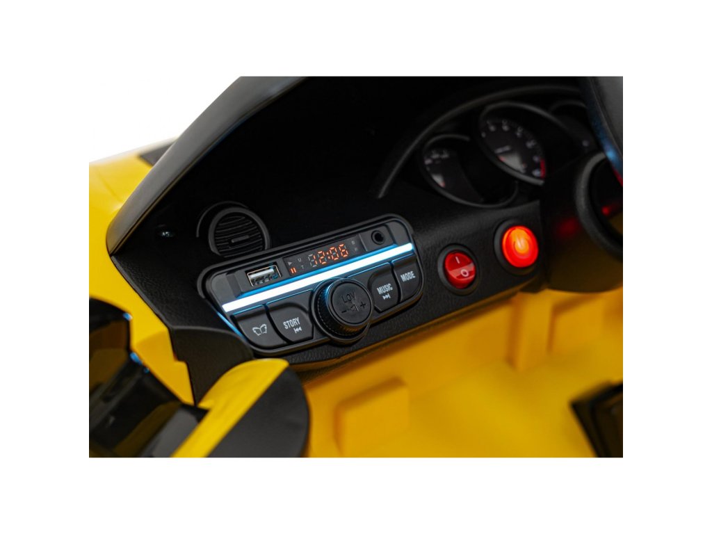 A játékautó távirányítóval vezérelhető, amivel szabályozható a jármű sebessége, változtatható a menetirány vagy a Stop biztonsági gomb segítségével azonnal leállíthatjuk a járművet. A jármű automatikus fék funkcióval van felszerelve, amely akkor aktiválódik, amikor elengedi a lábát a gázpedálról. Ezenkívül a biztonsági övek gondoskodnak a biztonságról.