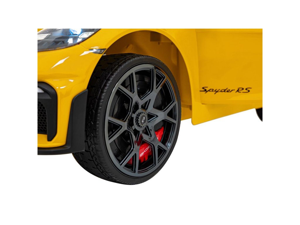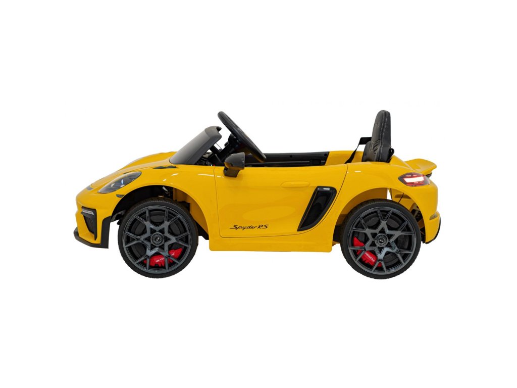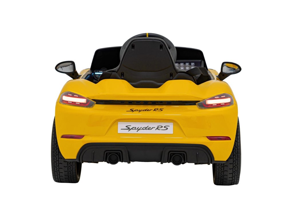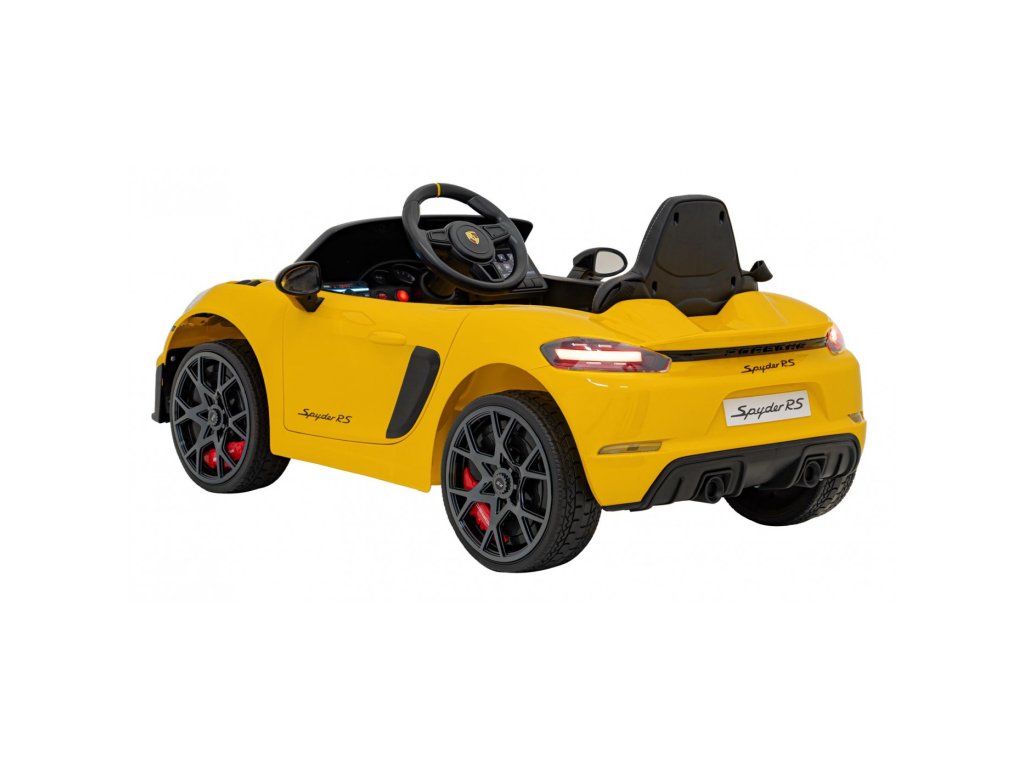 A Porsche Spyder RS 718 elektromos autó két 90 W összteljesítményű motorral és egy 12V 7Ah kapacitású akkumulátorral rendelkezik. Az EVA hab kerekek és az ökológiai bőrrel borított ülés gondoskodik a kényelmes utazásról. A zenepanel minden bizonnyal élvezetesebbé teszi az utazást a gyermek számára MP3, USB, AUX, Bluetooth és rádió . Teherbírás a játékautó 30 kg . A játékautó első és hátsó LED világítással és nyitható ajtókkal rendelkezik.