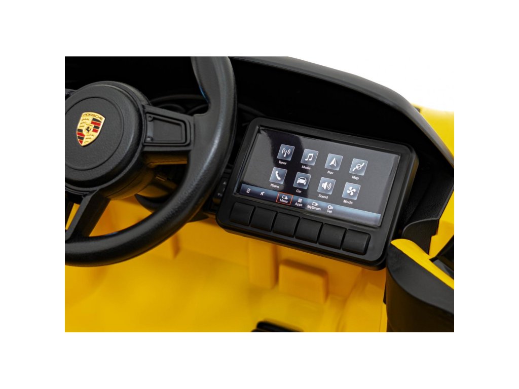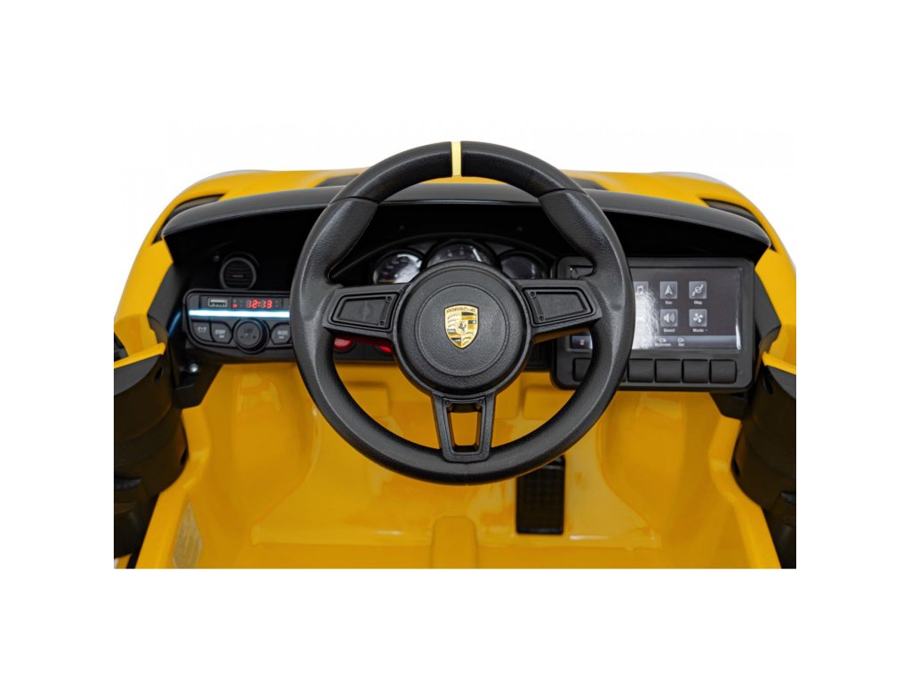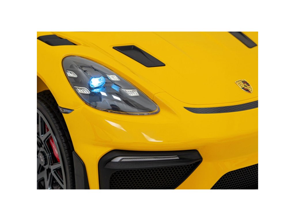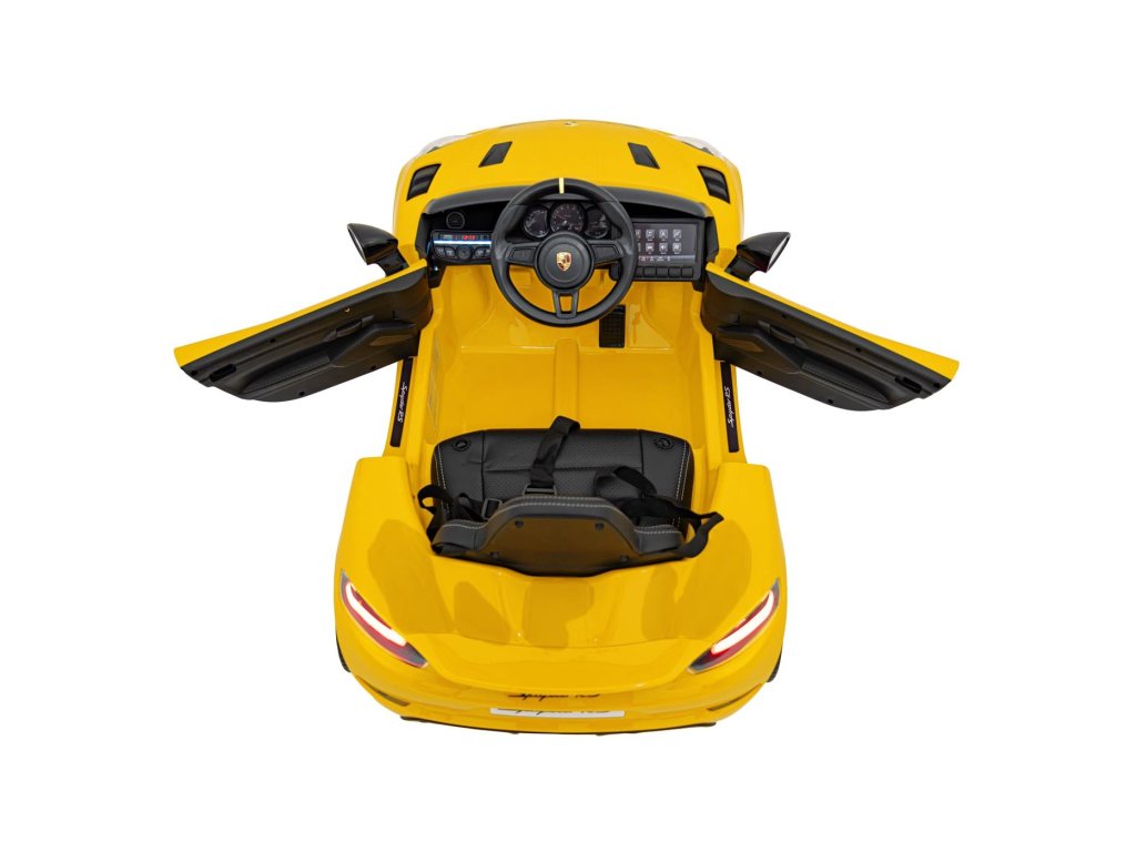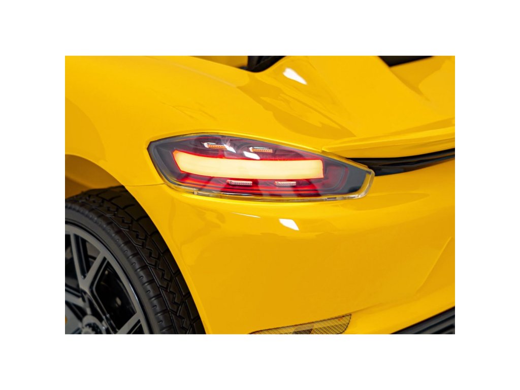 A Porsche Spyder RS 718 elektromos autó két 90 W összteljesítményű motorral és egy 12V 7Ah kapacitású akkumulátorral rendelkezik. Az EVA hab kerekek és az ökológiai bőrrel borított ülés gondoskodik a kényelmes utazásról. A zenepanel minden bizonnyal élvezetesebbé teszi az utazást a gyermek számára MP3, USB, AUX, Bluetooth és rádió . Teherbírás a játékautó 30 kg . A játékautó első és hátsó LED világítással és nyitható ajtókkal rendelkezik.