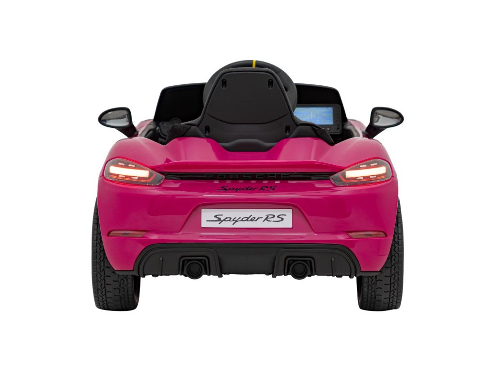 A Porsche Spyder RS 718 elektromos autó két, összesen 90 W teljesítményű motorral és egy 12 V 7 Ah kapacitású akkumulátorral rendelkezik. Az EVA habszivacs kerekek és az öko-bőrrel borított ülés kényelmes utazást biztosít. A zenei panel MP3, MP4, USB, AUX, Bluetooth és rádió . Teherbírás A játékautó súlya 30 kg . A játékautó első és hátsó LED világítással , valamint nyitható ajtókkal rendelkezik.