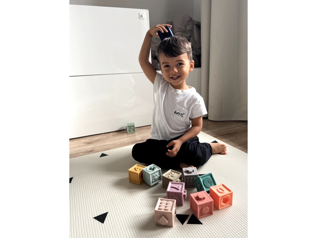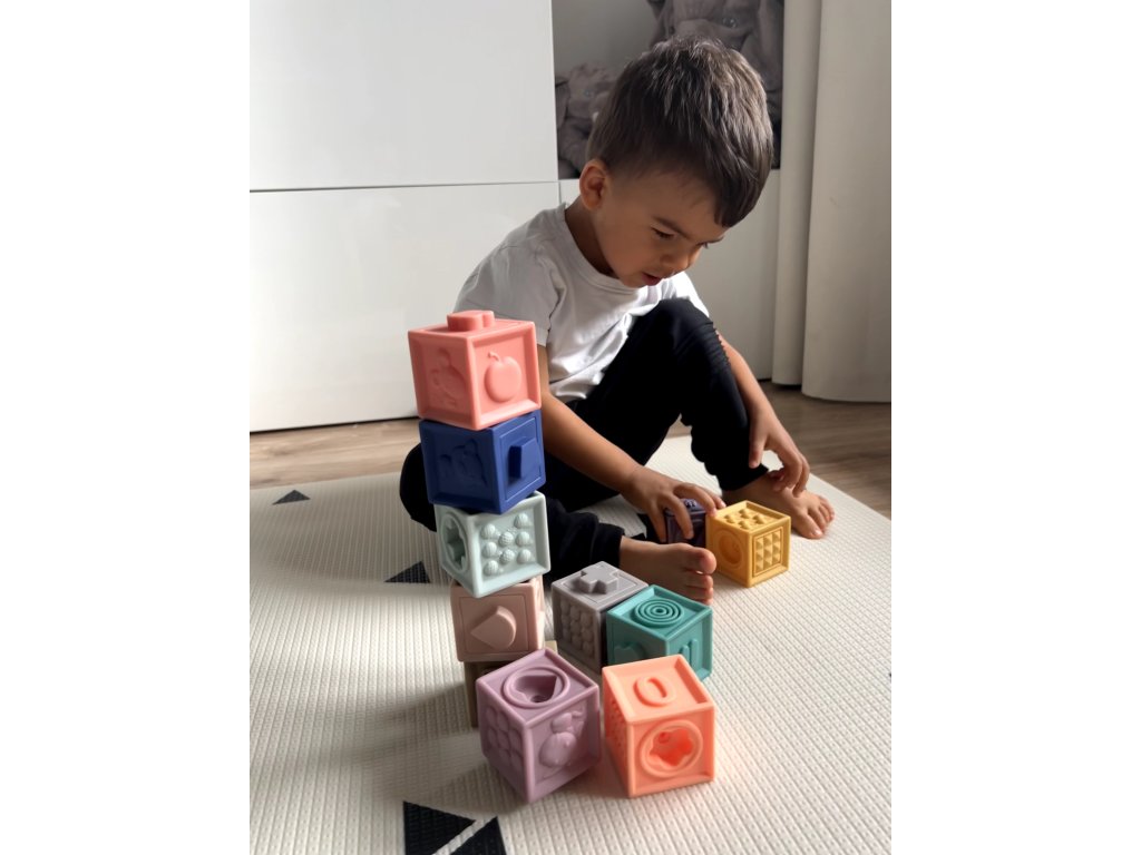 A puha gumitömbök a legkisebbekre való tekintettel készültek. Puha gumi anyagból készültek, amely kényelmes és biztonságos játékot biztosít. A tömbök domború formájúak, aminek köszönhetően a gyerkőc könnyedén tudja majd egymáshoz igazítani őket.