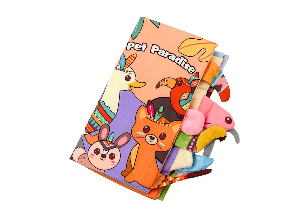 A puha könyv állatokkal nem csak játék, hanem interaktív fejlesztőeszköz a kicsiknek. Puha, susogó anyaga és kiálló elemei, mint például az állatok farka, lenyűgöző szenzoros stimulációt biztosítanak, amely bevonja az érzékszerveket és fejleszti a szem-kéz koordinációt.