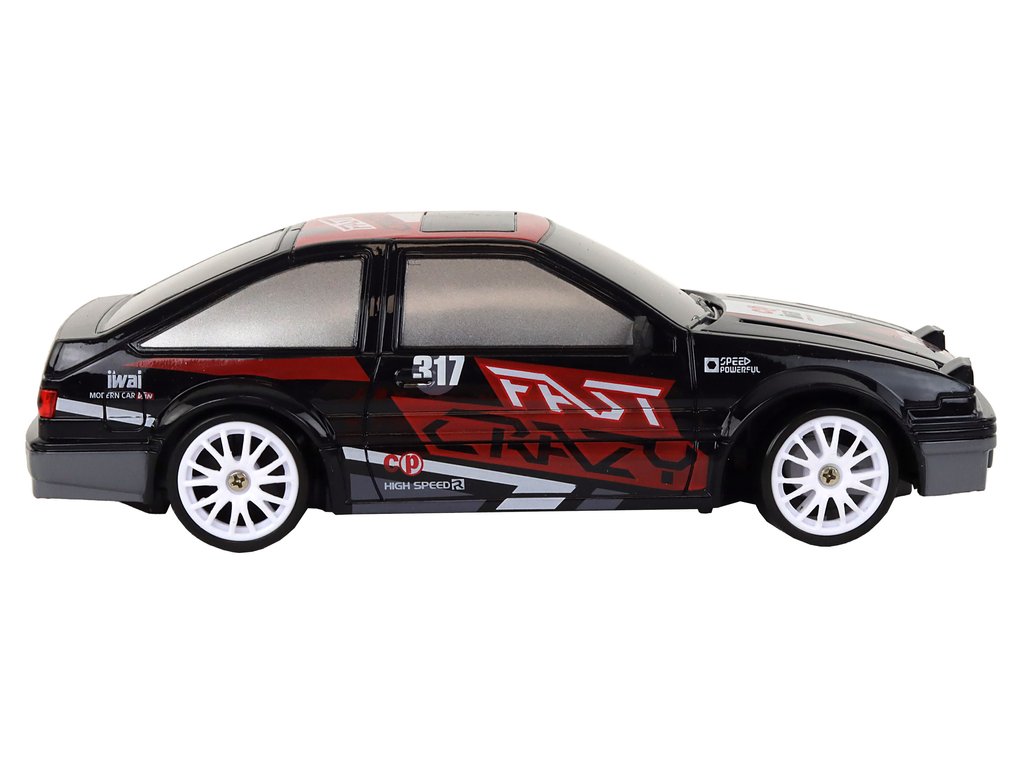 R/C 1:24 fekete távirányítós sportkocsi cserélhető kerekekkel