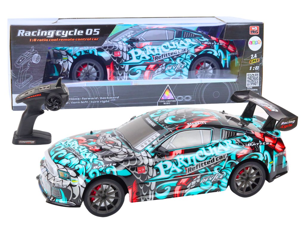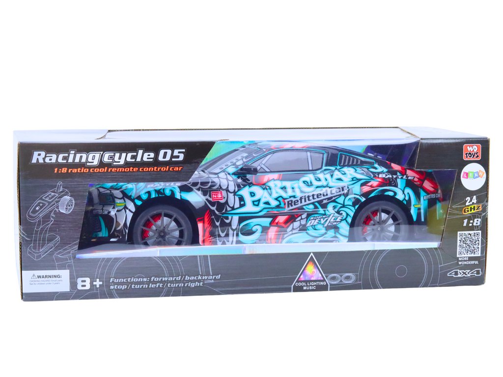 Egy nagy , 1:8 méretarányú távirányítós sportautó dinamikus dizájnnal, graffitinyomattal és valósághű fény- és hangeffektusokkal rendelkezik. Ütésálló, ideális intenzív versenyzésekhez, és könnyen kezelhető 2,4 GHz-es távirányítóval . Ez a modell nagyszerű választás a gyors autók és az akciós szórakozás szerelmeseinek.