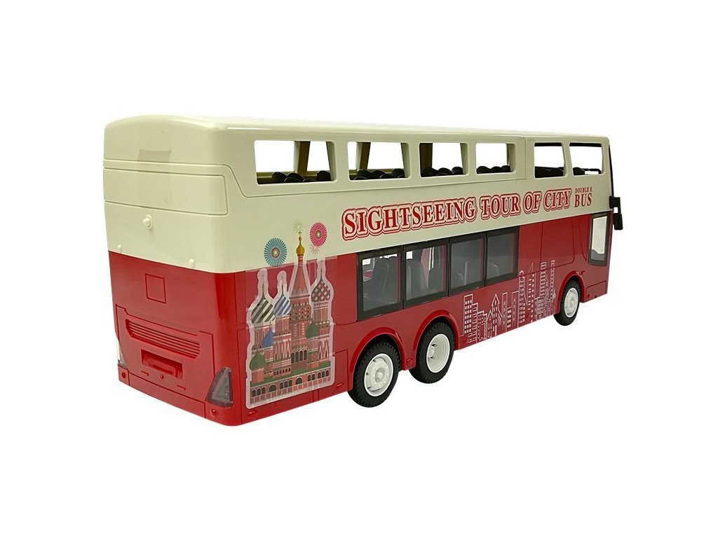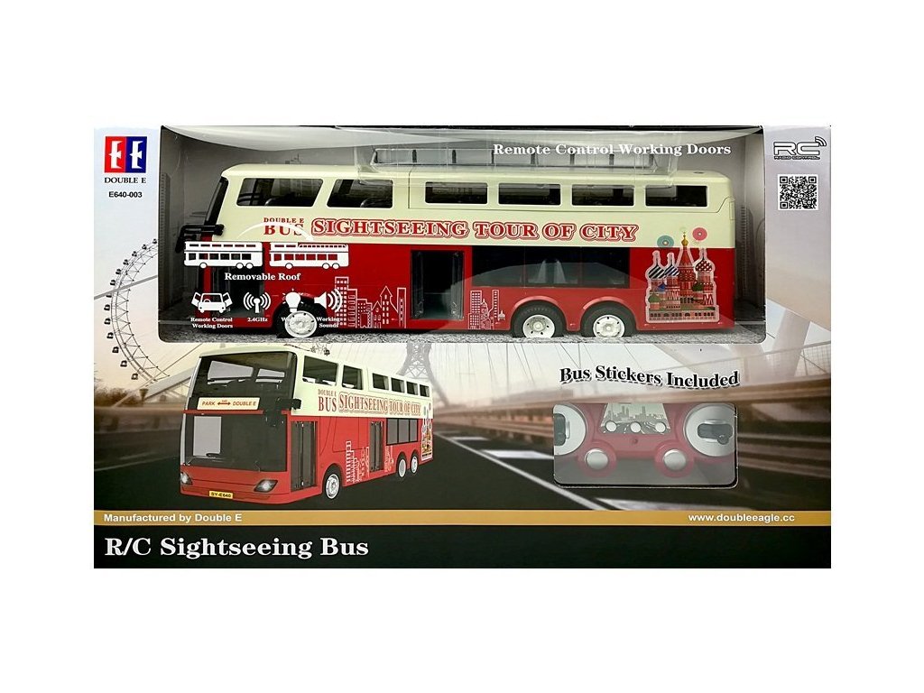 Az emeletes busz minden bizonnyal minden rajongó tetszeni fog ezeknek a járműveknek. A távirányító 2,4 GHz-es frekvenciájú, segítségével a kezelő irányíthatja, irányt válthat előre/hátra és jobbra/balra. A busz hang- és fényeffektusokkal rendelkezik, előnye, hogy az ajtók távirányítóval nyithatók. A bemutatott modell 1:18 méretarányban készült.
