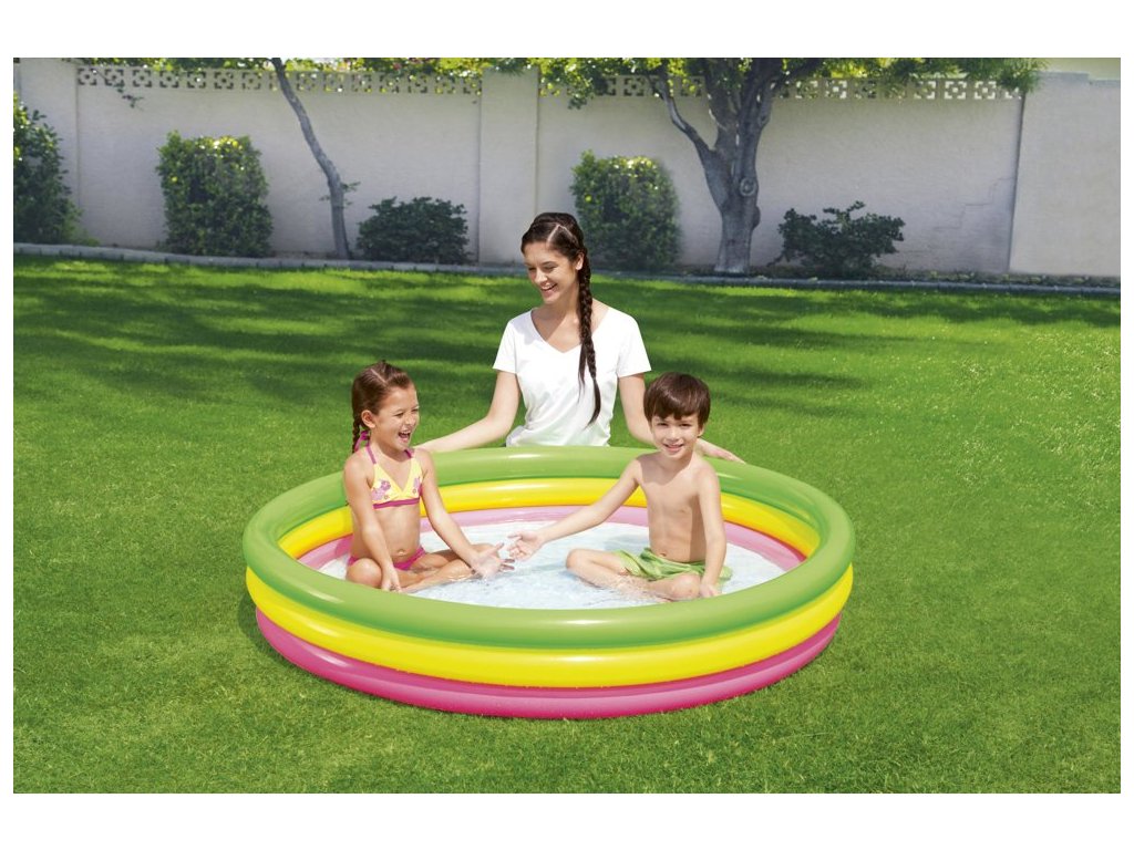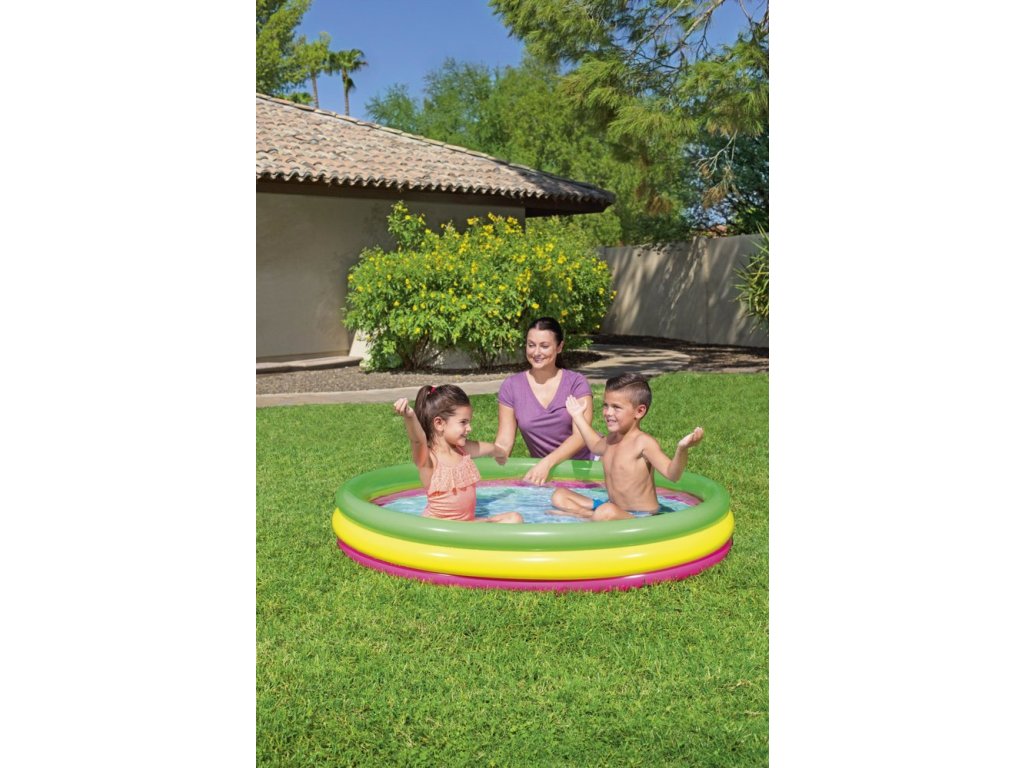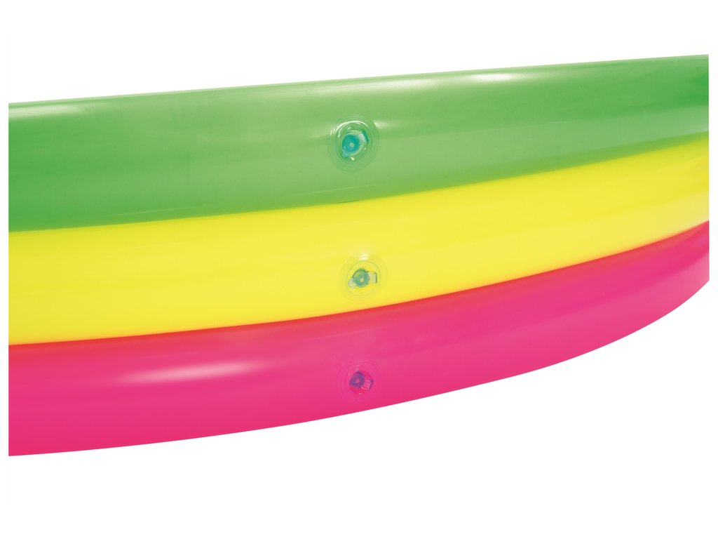 A felfújható medence mozgást és szórakozást biztosít gyermekének a vízben. Kis méreteinek köszönhetően 2 éves kortól ideális gyermekek számára. Könnyen felfújható és leereszthető, így könnyen tárolható. A medence puha felfújható alja gondoskodik a kényelemről.