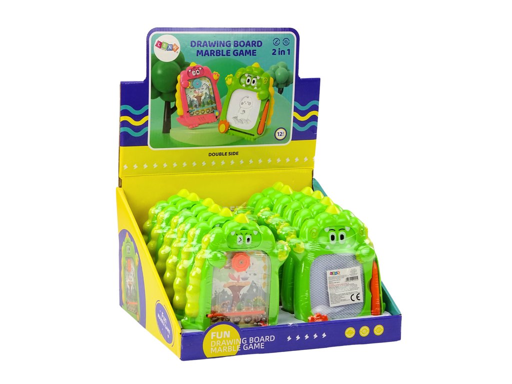 Kétoldalas rajztábla és zsebjáték 2 az 1-ben zöld dinoszaurusz