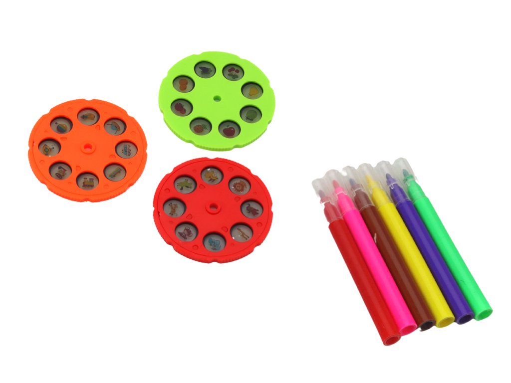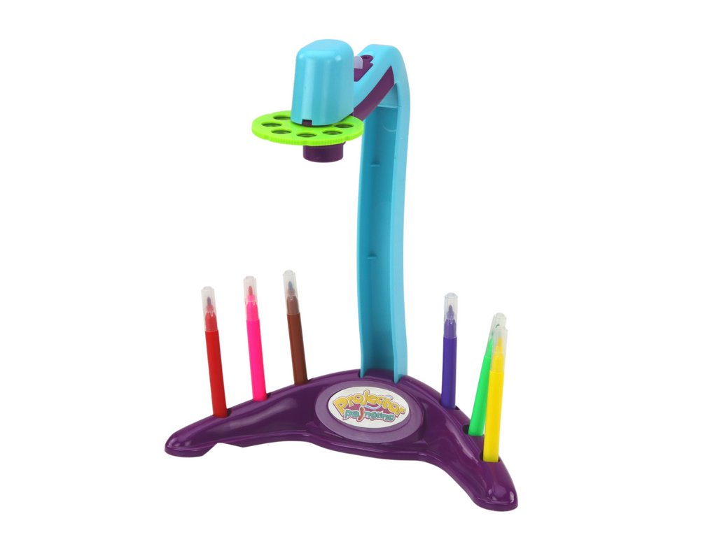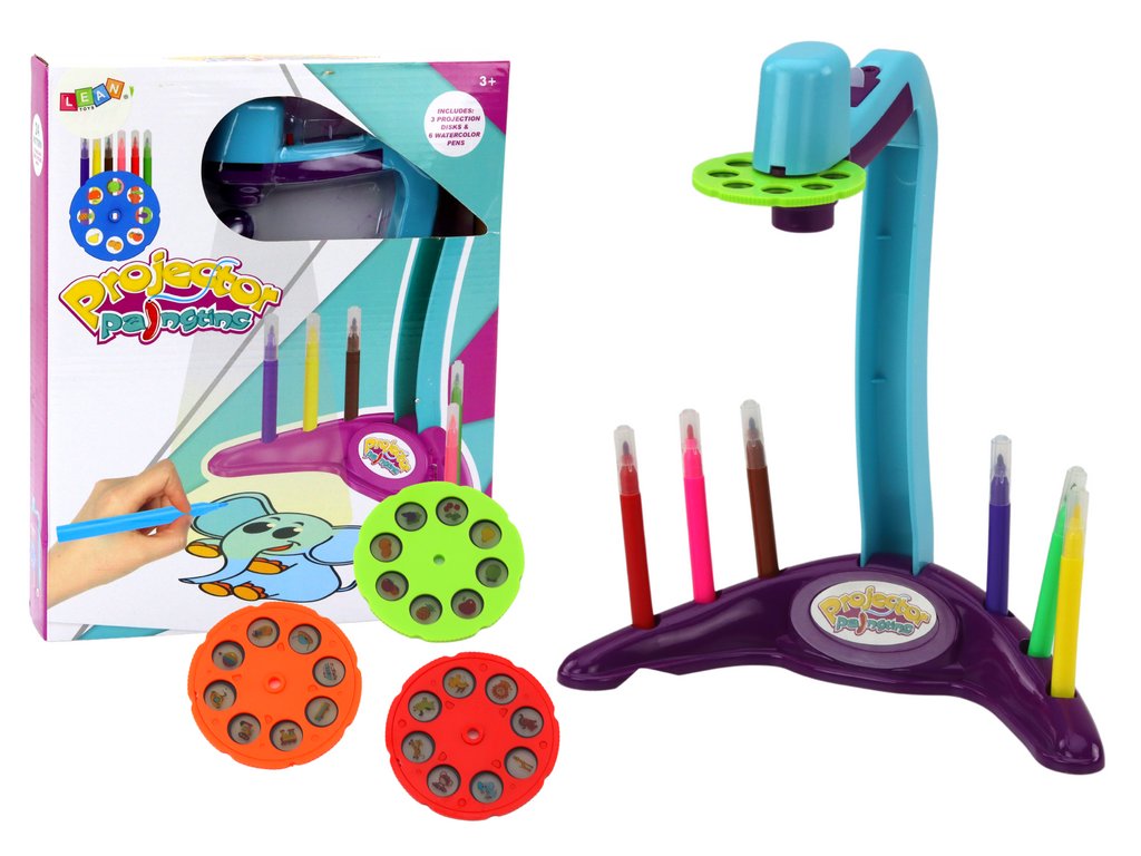 A rajzprojektor egy kreatív játék, amely fejleszti a gyerekek fantáziáját és művészi készségeit. A készülék három cserélhető lemezt tartalmaz, különböző vetületekkel, amelyek lehetővé teszik a képek különböző felületekre történő festését. Nekik köszönhetően a gyerekek olyan lenyűgöző motívumokat vihetnek át papírra vagy más sík felületekre, mint az állatok, járművek vagy gyümölcsök.
