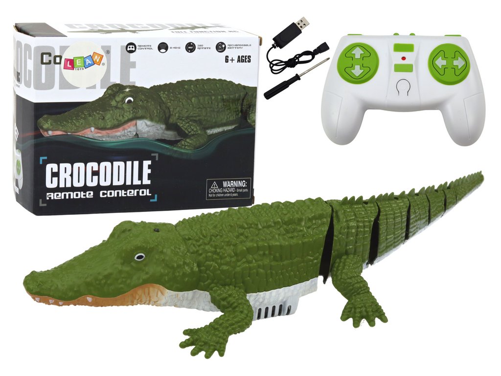 A mellékelt távirányító a krokodil irányítására szolgál, amely lehetővé teszi a felhasználó számára, hogy zökkenőmentesen irányítsa a mozdulatokat. Ennek köszönhetően a krokodil jobbra és balra is tud mozogni, ami teljes szabadságot biztosít a vízterek felfedezésekor.