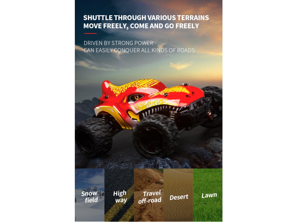 - Vonzó dizájn : A monster truck jellegzetes és vonzó dizájnnal rendelkezik, amely minden kis és nagy RC-autó-rajongó számára tetszeni fog.