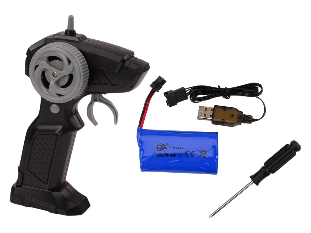 Az autót egy 3,7 V-os 50 mAh-s akkumulátor hajtja, amely a készlet része. Az akkumulátorhoz töltő is tartozik.