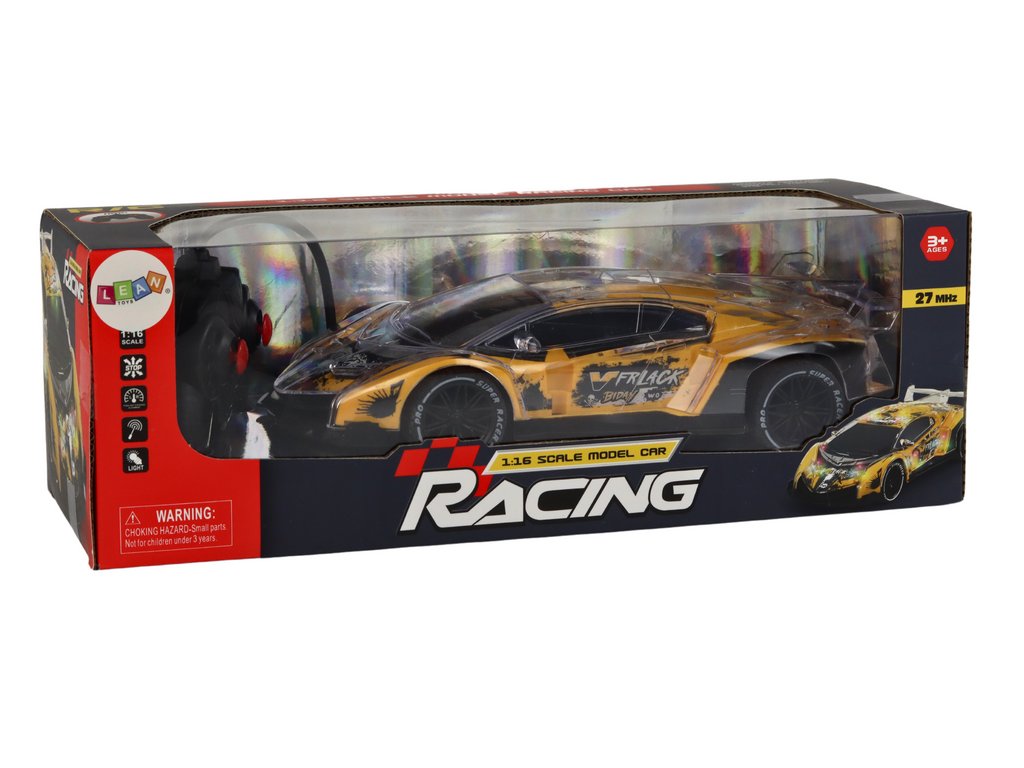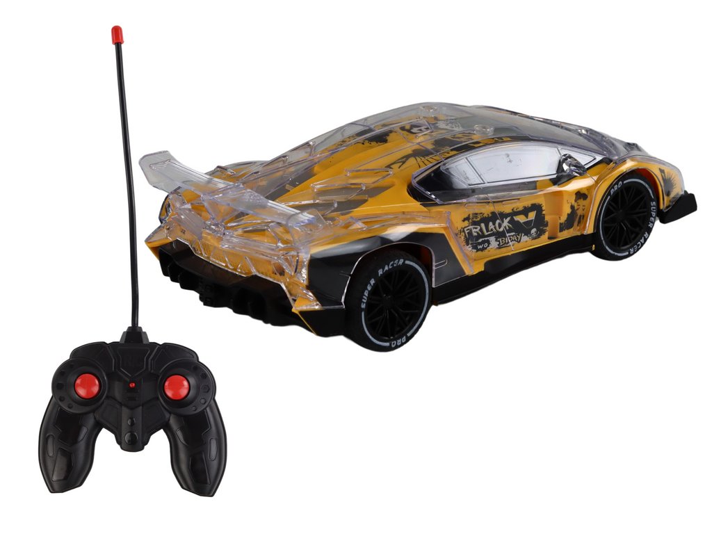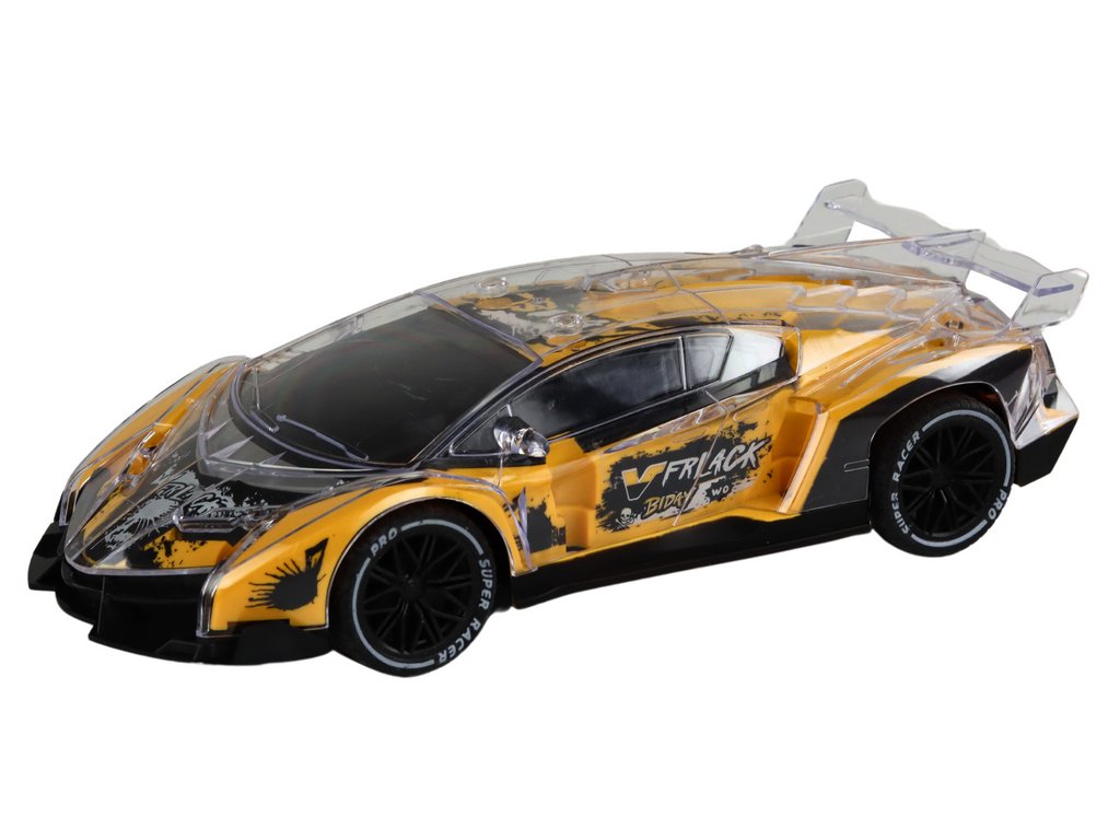 Az 1:16 méretarányú sárga távirányítós sportautó nemcsak dizájnjával, hanem egyedi átlátszó borításával is kitűnik. A színes fényeffektusok a borítónak köszönhetően terjednek, ami kicsi gyerekeknek és nagyobb rajongóknak egyaránt tetszeni fog.