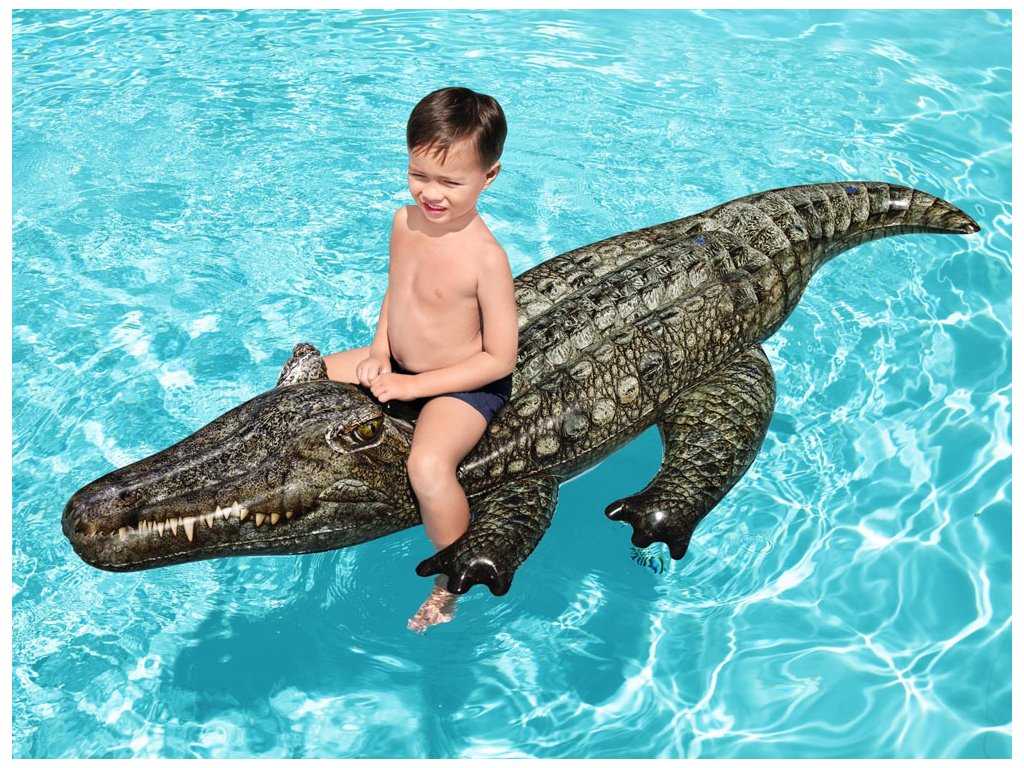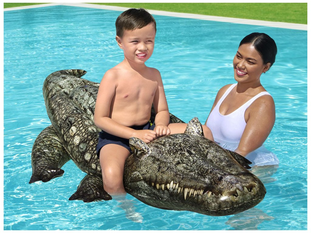 A Bestway Crocodile felfújható úszójátéka nagyszerű partner a vízben. A 193 x 94 cm méretű termék kiváló minőségű vinilből készült. A maximális teherbírás 45 kg . A játék két légkamrával és szelepekkel rendelkezik, amelyek megakadályozzák a levegő kijutását. Stabil és biztonságos, 3 éves kortól gyermekek számára készült. Hátul kapaszkodó fogantyúja van, amit a gyermeke megfoghat. A csomagban javítási matrica található.