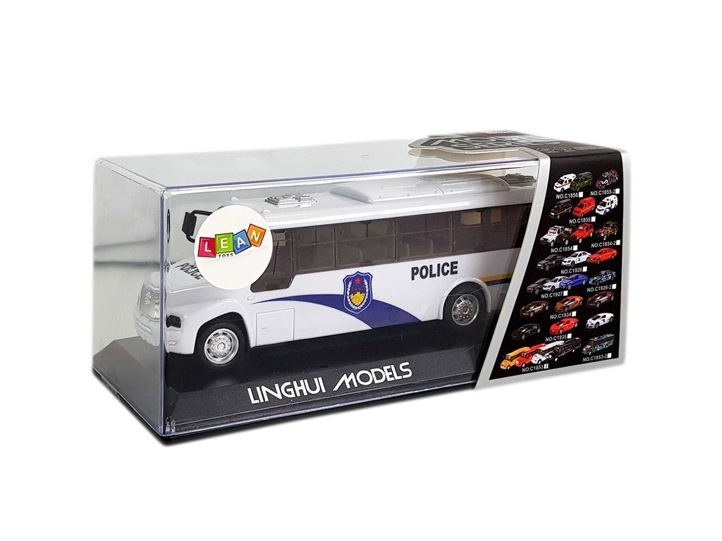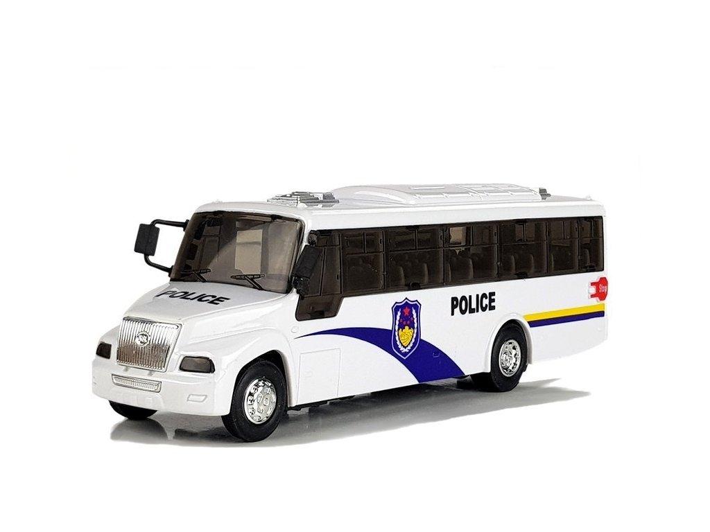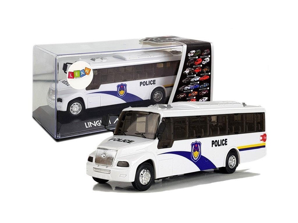 - A doboz, amibe kerül, jól mutat majd a polcon. A busz hátrameneti hajtású, műanyagból készült, gumiabroncsokkal. Az autó belsejét minden részletében reprodukálták, ami hasonlítani fog a valódi megfelelőjére. A fehér autó oldalain kék minták, POLICE felirat és jellegzetes matricák találhatók. A játék nagy kíváncsiságot ébreszt gyermekében, és minden bizonnyal az egyik ilyen autót is be fogja venni a gyűjteményébe.