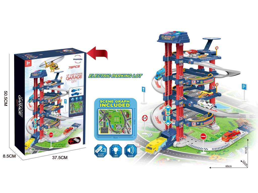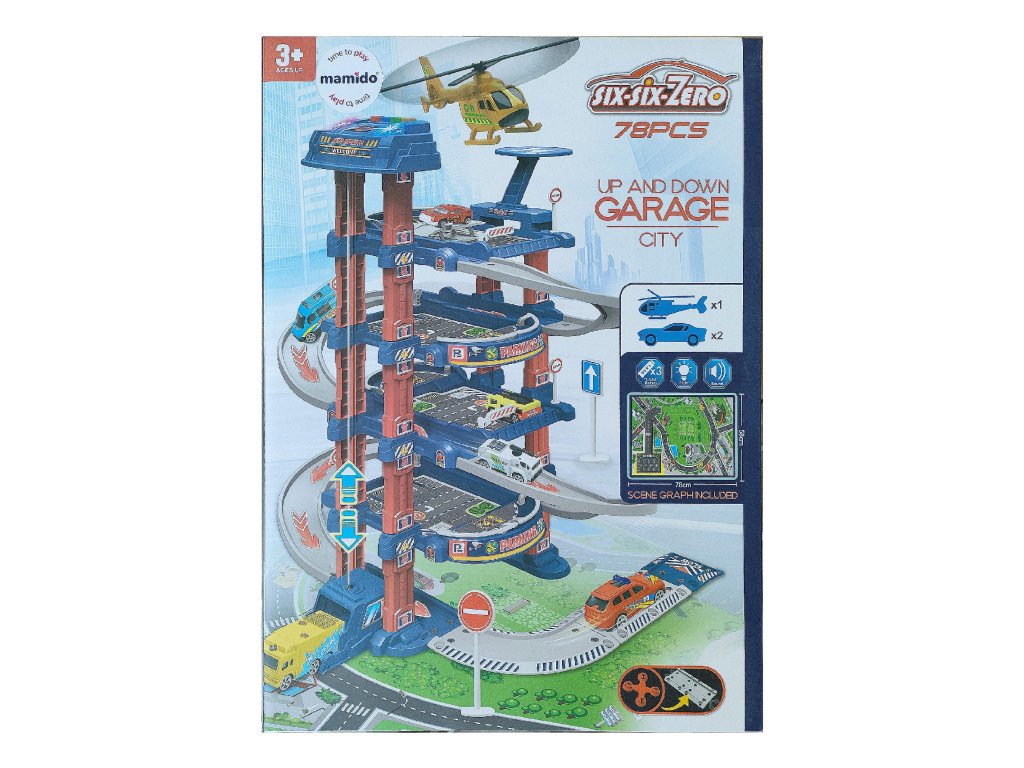 Nagy, emeletes garázs 78 darabbal órákig tartó szórakozást kínál a gyerekeknek az autók parkolásával, helikopterrel való repüléssel és közlekedési helyzetek létrehozásával. A parkolóban több emelet, elektromos lift található az autók fel- és lemozgatásához, spirál alakú rámpák, valamint fény- és hanghatásokkal van kiegészítve, amelyek még valósághűbbé teszik a játékot.