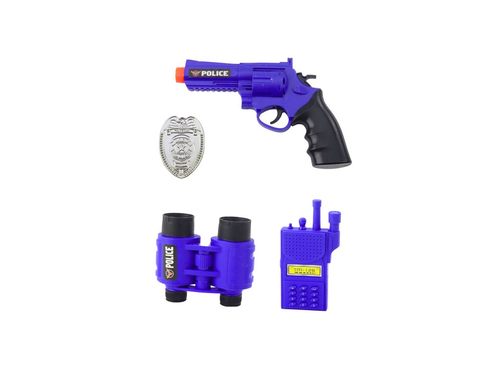 - A készlet elemei: sisak, bilincs kulcsokkal, pisztoly, távcső, adó-vevő, gumibot, jelvény, pajzs