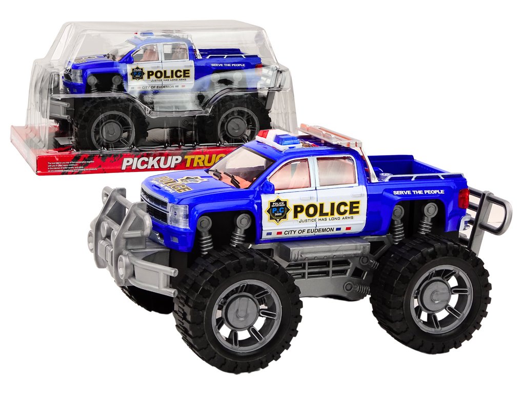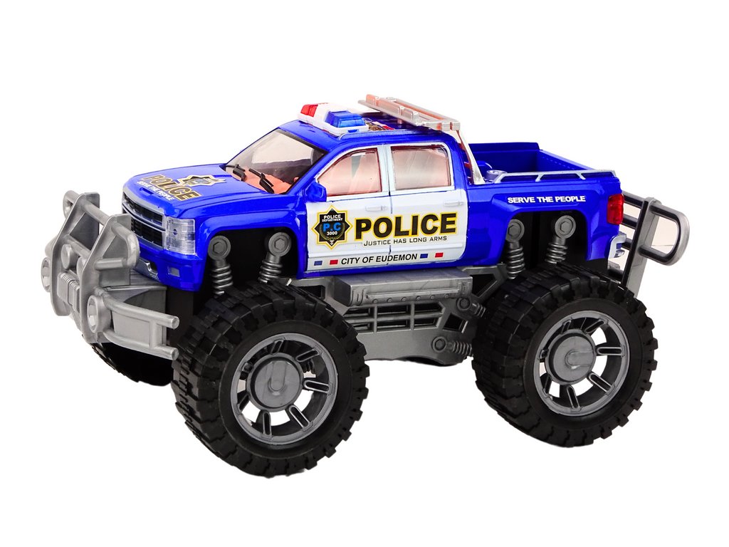 A jármű nagy fekete terepkerekekkel van felszerelve, amelyek kiváló tapadást biztosítanak a különböző felületeken, lehetővé téve a játékot még megerőltetőbb körülmények között is. Az autó karosszériája kékre van festve, és a "POLICE" felirat díszíti, ami hitelességet ad neki. A tetőn rendőrjelzők találhatók, amelyek kiemelik annak funkcióját és megjelenését.