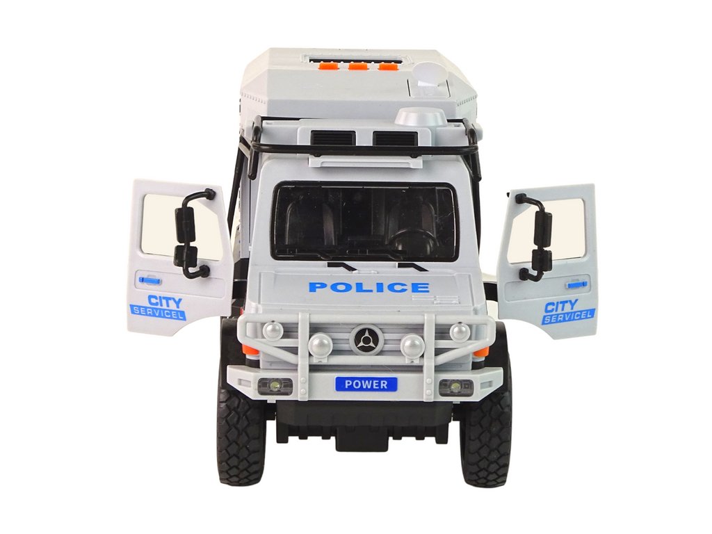 Bemutatjuk Önnek kivételes játékunkat - Rendőrségi terepjárónkat 1:14 méretarányban. Ez a csodálatos autó nem csak szórakozást nyújt, hanem interaktivitásával és részleteivel is izgat.