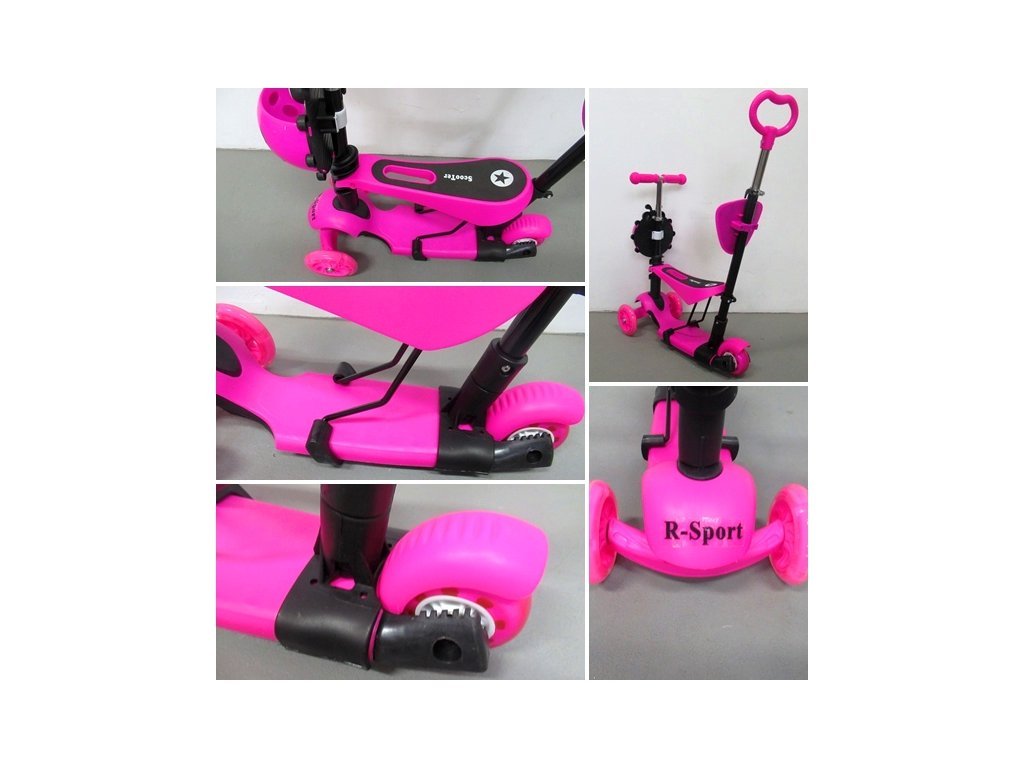 Roller H3 R-Sport 5 az 1-ben világító kerekekkel, rózsaszín