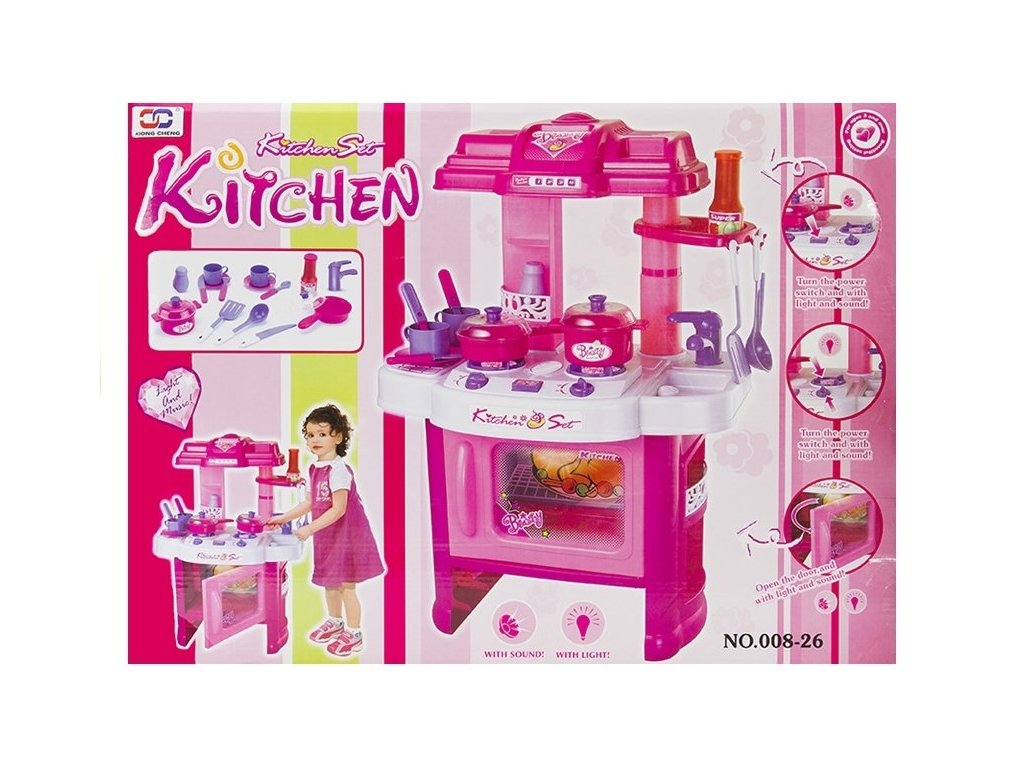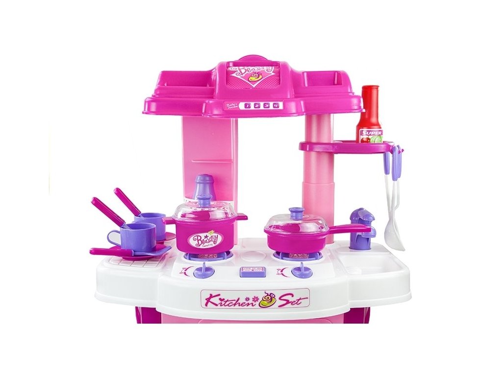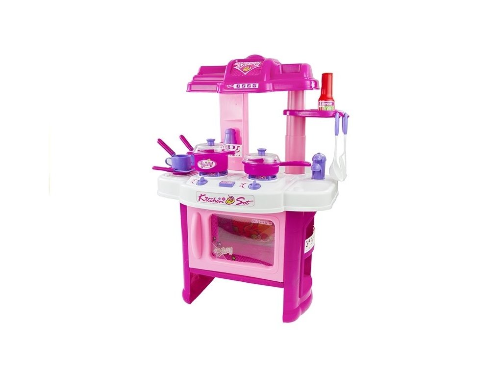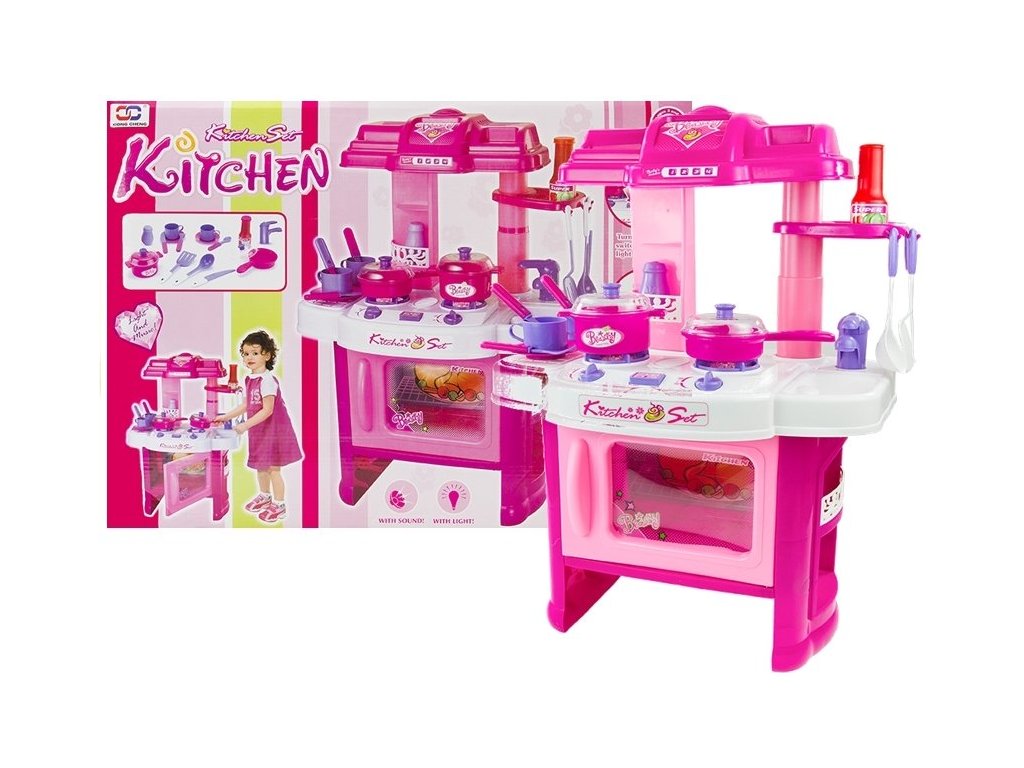 A gyerekkonyha számos olyan elemből áll, amelyek a saját háztartás vezetéséhez szükségesek. A konyhában két különálló kapcsolóval ellátott, világító égő található, bekapcsolva a gyerek főzésre emlékeztető hangot hall. A konyha gondosan készült minőségi anyagból, éles szélek nélkül, és megfelel minden szigorú EU szabványnak.