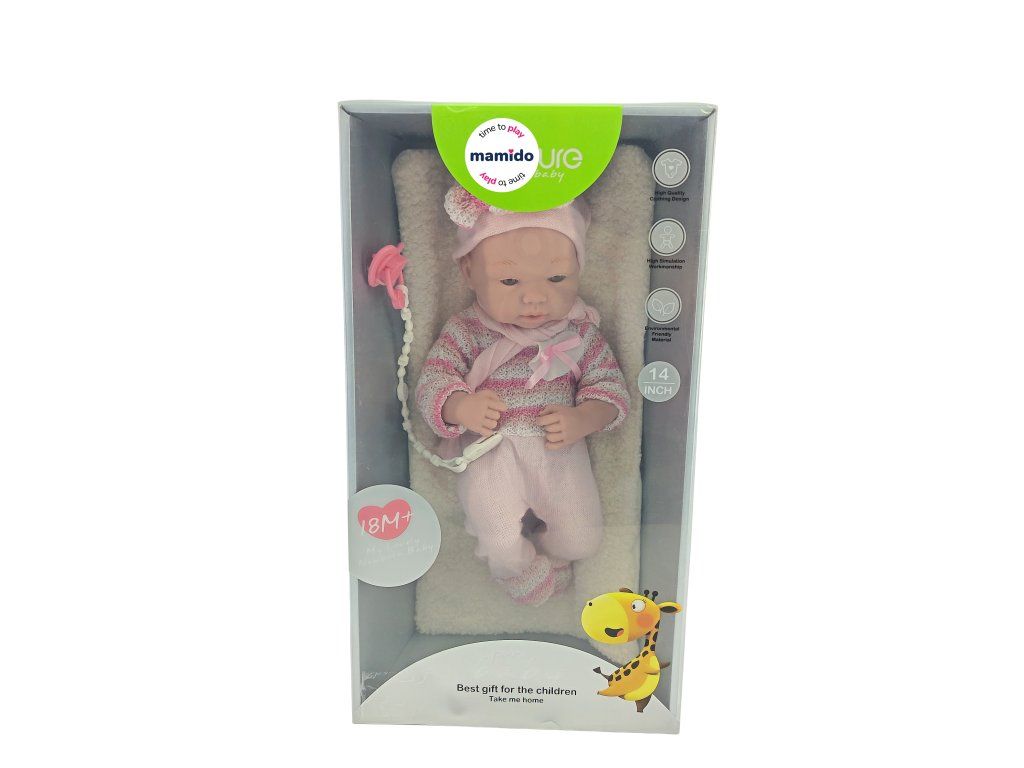A rózsaszín ruhás baba nagyszerű társ minden kis gondoskodó számára. Aranyos, fehér-rózsaszín csíkos pulóvere, sapkája és sálja bájossá teszi. Mozgatható karokkal és lábakkal rendelkezik, amelyeket könnyen beállíthatunk különböző pozíciókba, ami növeli a valósághűséget és a játék közbeni interakciós lehetőségeket. Ez az aranyos baba biztonságos és tartós anyagokból készült, ami biztosítja a gyermekek számára a biztonságos szórakozást. Valósághű vonásai, beleértve az arc finom részleteit, úgy néznek ki, mint egy igazi csecsemő, ami varázslatossá teszi, és arra ösztönzi a gyerekeket, hogy gondoskodjanak róla. Ezenkívül a készlet tartalmaz egy zsinóron lévő cumit, amely a baba ruhájához van rögzítve, és egy puha takarót.