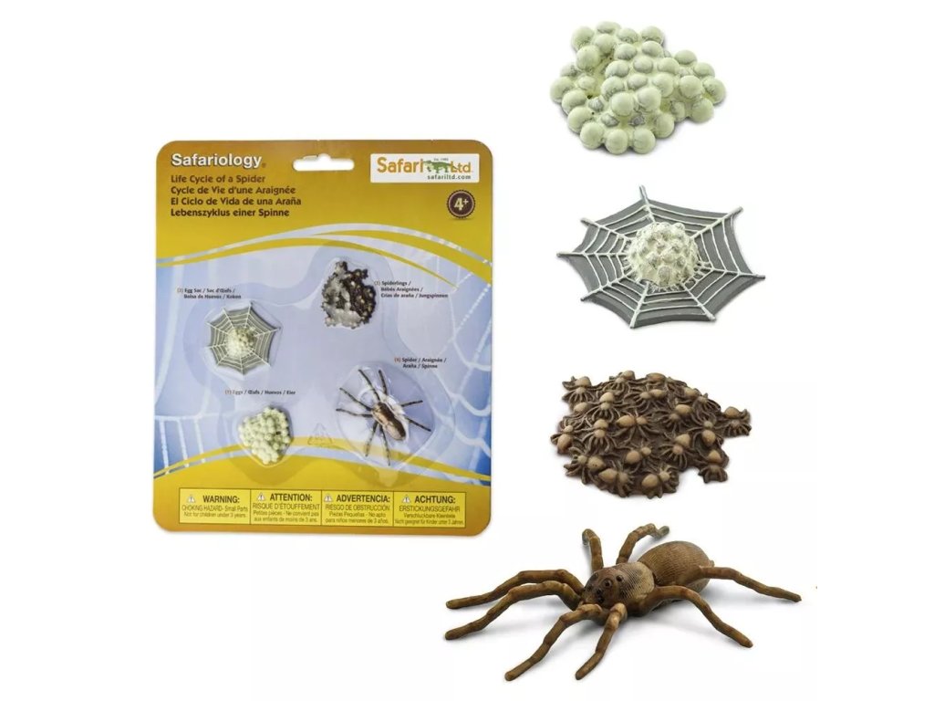 Oktató készlet, amely a pók fejlődésének egyes szakaszait mutatja be a tojástól a felnőtt egyedig. Gyerekeknek készült, hogy megismerjék az életciklust és az alapvető tényeket ezekről az állatokról.