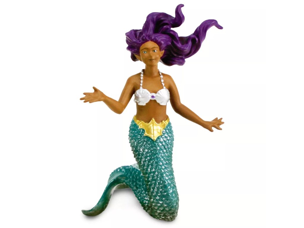 A figurának lobogó lila haja, csillogó gyöngyházfényű türkizkék farka és barna bőre van. A figurák részletesen kidolgozottak és hűen tükrözik a sellő jellegzetes vonásait.