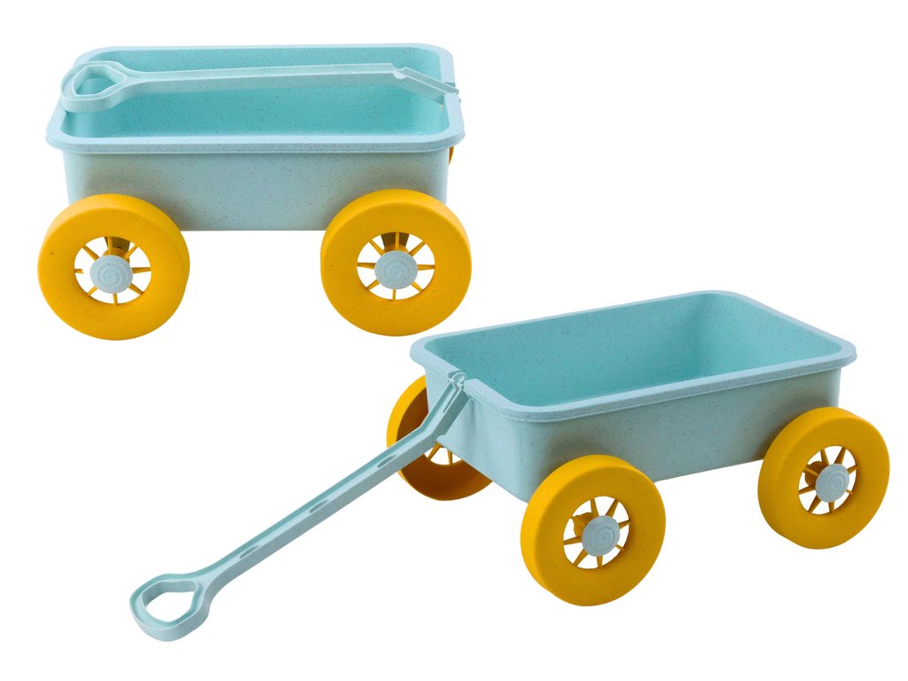 A játékkocsi praktikus és esztétikus játék a türkiz gyönyörű pasztell árnyalatában, amely minden gyermeket elvarázsol. A kényelmes fogantyúnak köszönhetően a gyerekek könnyen maguk mögé húzhatják, így ideális társ a szabadtéri játékokhoz, sétákhoz. Tartós és biztonságos műanyagból készült, amely ellenáll az intenzív használatnak és a kedvezőtlen időjárásnak.