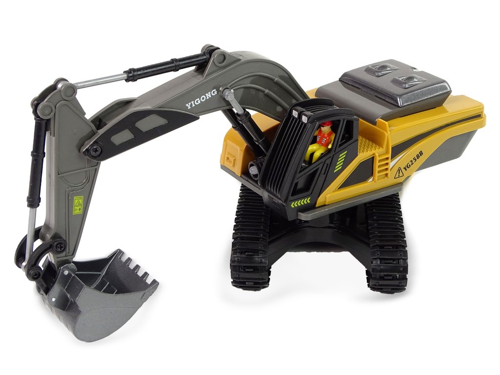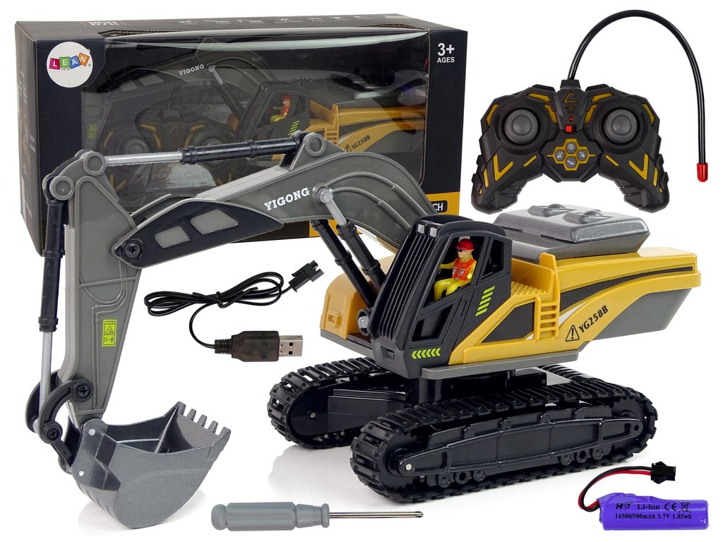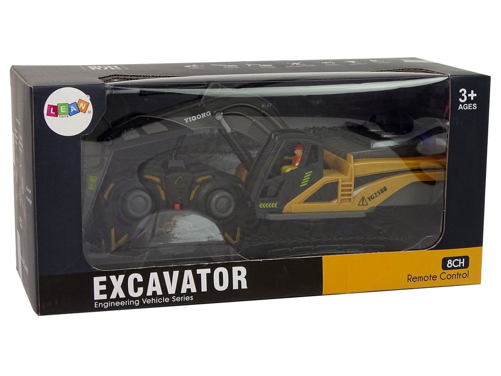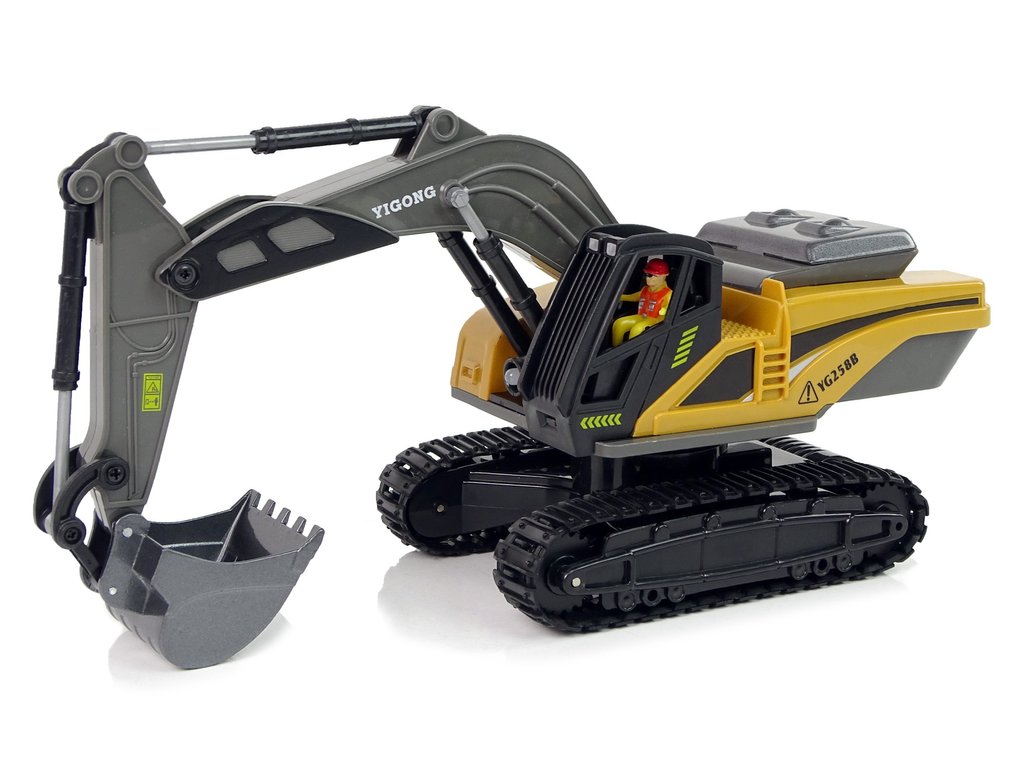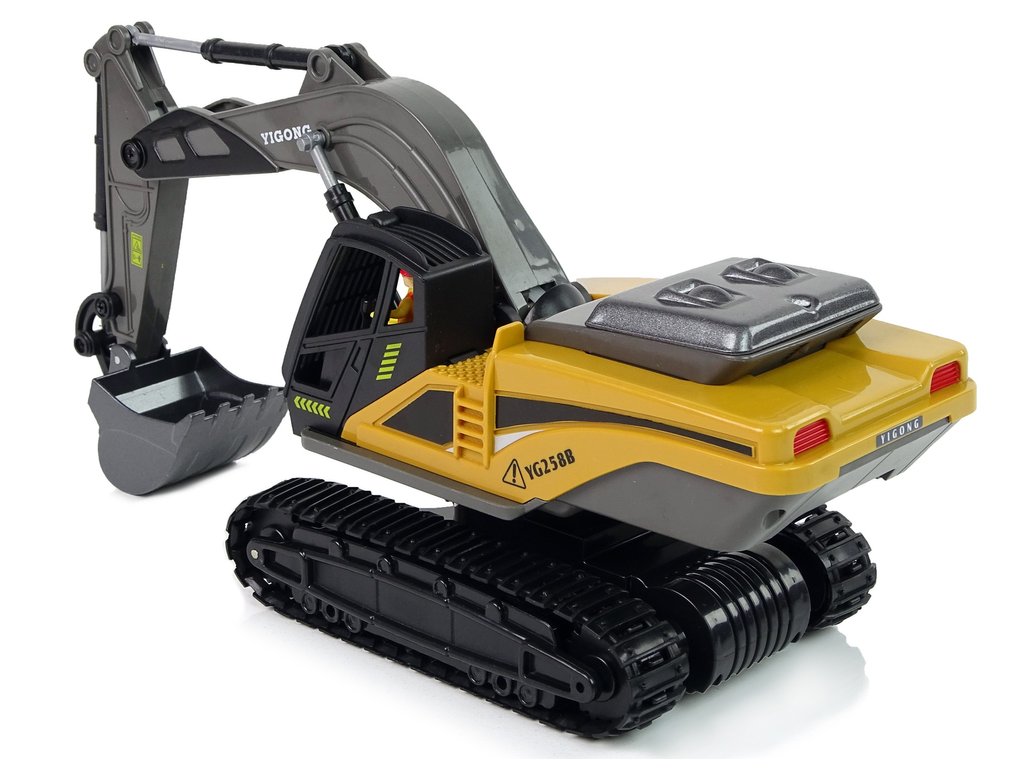 A valódi kotrógép tökéletes mása és az érzékeny kezelőszervek lehetővé teszik a gyermekek számára, hogy megtanulják az építkezésen végzett munka alapelveit. Ez a játék hosszú órákig tartó szórakozást garantál a gyerekszobán kívül és belül egyaránt. A jármű gumitalpokkal rendelkezik, amelyek képesek megbirkózni a különböző felületekkel egy valódi építkezésen. A távirányító 2,4 GHz-es frekvenciájú, és a vezérlés nagyon egyszerű.