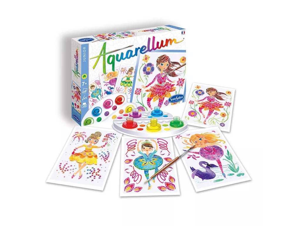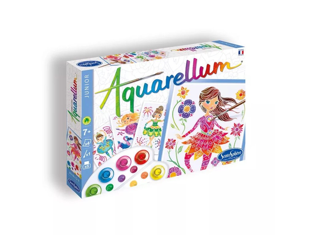 A francia Sentosphere márka műhelyéből származó kreatív készlet, amelyet olyan gyermekek számára terveztek, akik szeretnek akvarellel alkotni. A készlet lehetővé teszi, hogy színes képeket készítsen néhány csepp akvarell segítségével és egyszerű színkeverési technikákkal.