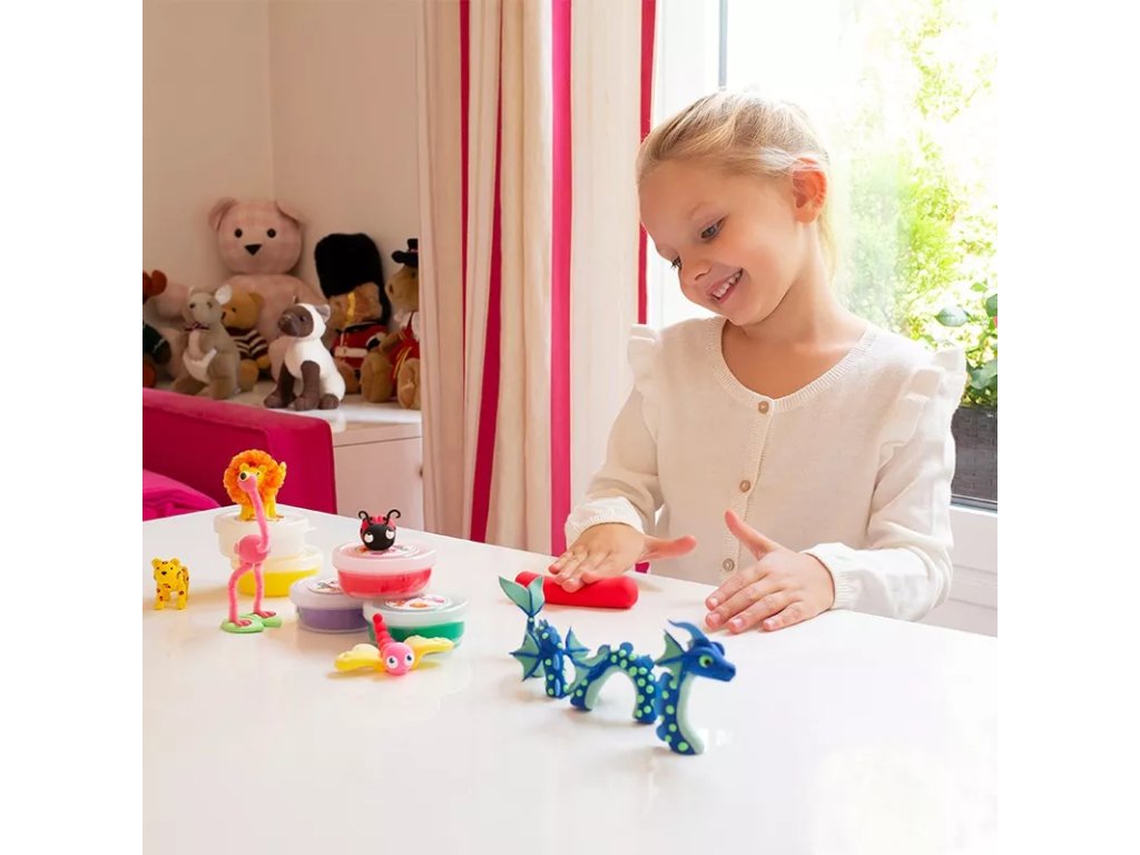 Modellező anyag, amely nem ragad az ujjakra és nem hagy foltot. Könnyű és rugalmas textúrájú, illatos gyurma, amely a levegőn megszárad, és lehetővé teszi a műalkotások hosszabb ideig történő megőrzését; a színek tökéletesen keverednek egymással.