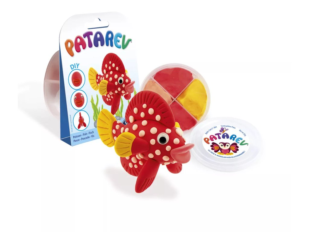 A francia Sentosphere márka készlete lépésről lépésre útmutatót tartalmaz egy dekoratív hal Patarev gyurmával történő elkészítéséhez.