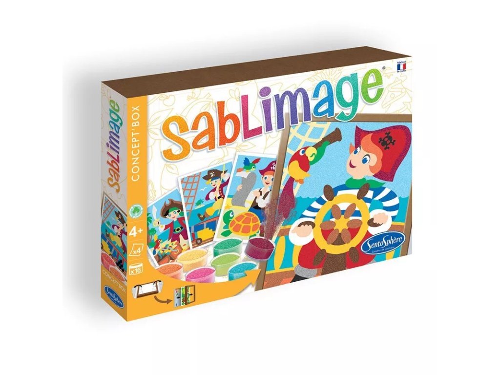 Készítsen eredeti alkotásokat a hétköznapi képekből a Sablimage – Kalózok kreatív készlet segítségével. A homokképek szórakoztató és manuális tevékenységet kínálnak, amely támogatja a gyermekek kreativitásának és színérzékének fejlődését.