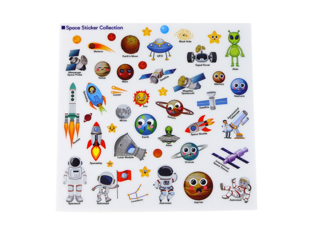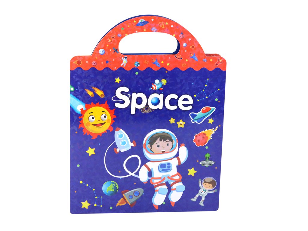 Ez az űrtémájú matricakészlet gyerekeknek kreatív módja a képzelet fejlesztésének és a játékon keresztüli tanulásnak. Az aktatáska formájú könyv egy praktikus elemet ad hozzá, és lehetővé teszi a könnyű hordozhatóságot és tárolást. A készlet matricákat tartalmaz angol nyelvű szavakkal. Ez egy nagyszerű módja annak, hogy elsajátítsd a térrel kapcsolatos alapvető szókincseket.