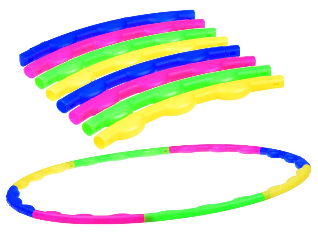 - Hula karika: színes hula karika műanyagból. Az 55 cm-es átmérő ideális gyermekek számára, könnyű centrifugálást és szórakozást biztosít.