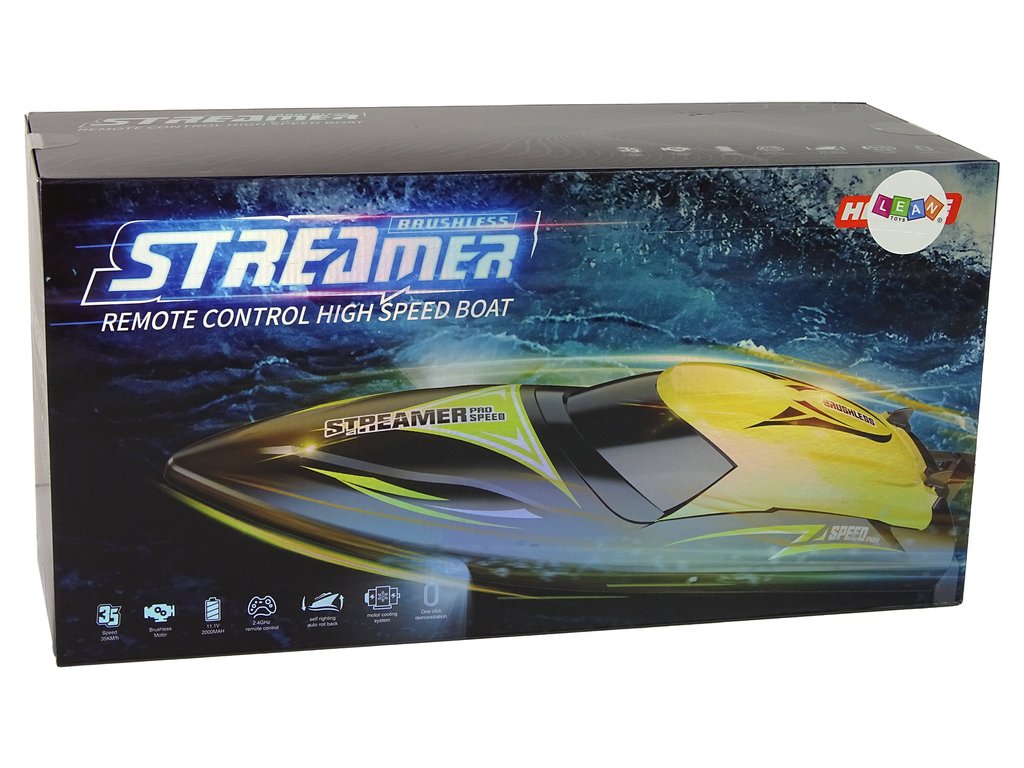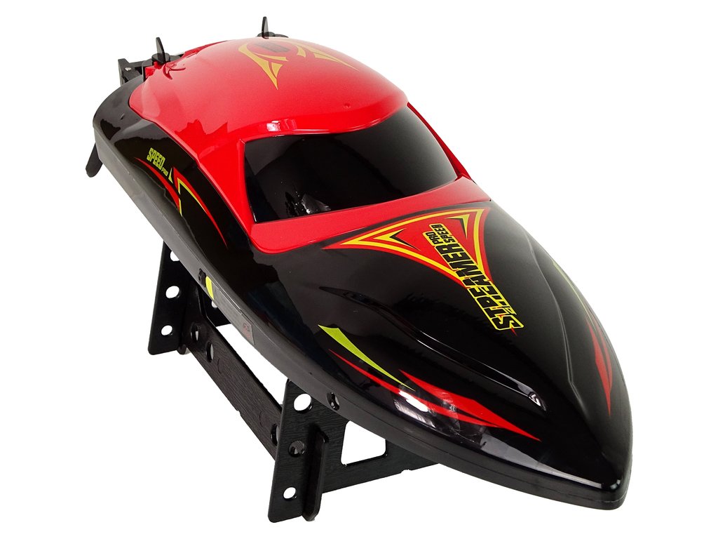 A motorcsónak speciális konstrukciója megakadályozza a víz bejutását. Agilis, gyors és megbízható. A távirányító kényelmes, tökéletesen illeszkedik a kézbe. 2,4 GHz-es frekvencián ad, ami két jármű vezérlésekor nem okoz interferenciát.