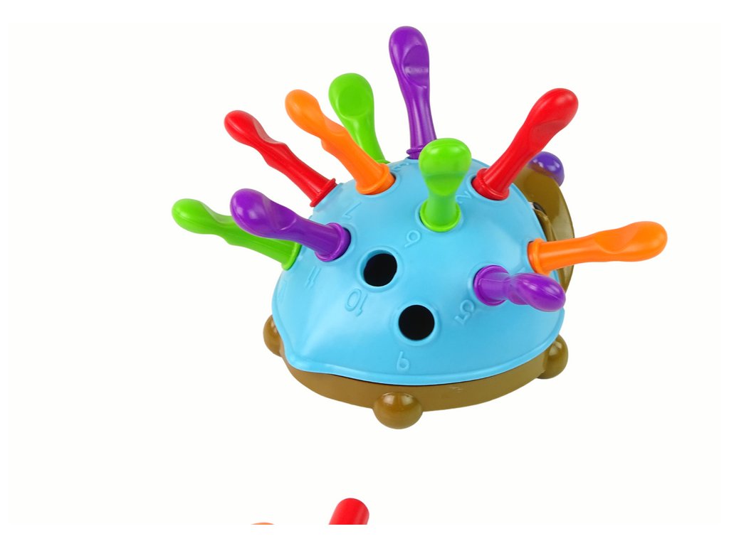 Érdekes tulajdonsága a tövis , amelyet a gyerekek magukhoz ragaszthatnak. A csomagban 12 műanyag tüske található, amelyeket a sündisznó kerek lyukaiba kell helyezni. Ez nem csak a kisujjaknak jelent kihívást, hanem nagyszerű módja annak, hogy megtanulj 1-től 12-ig számolni, mert számok is vannak rajta.
