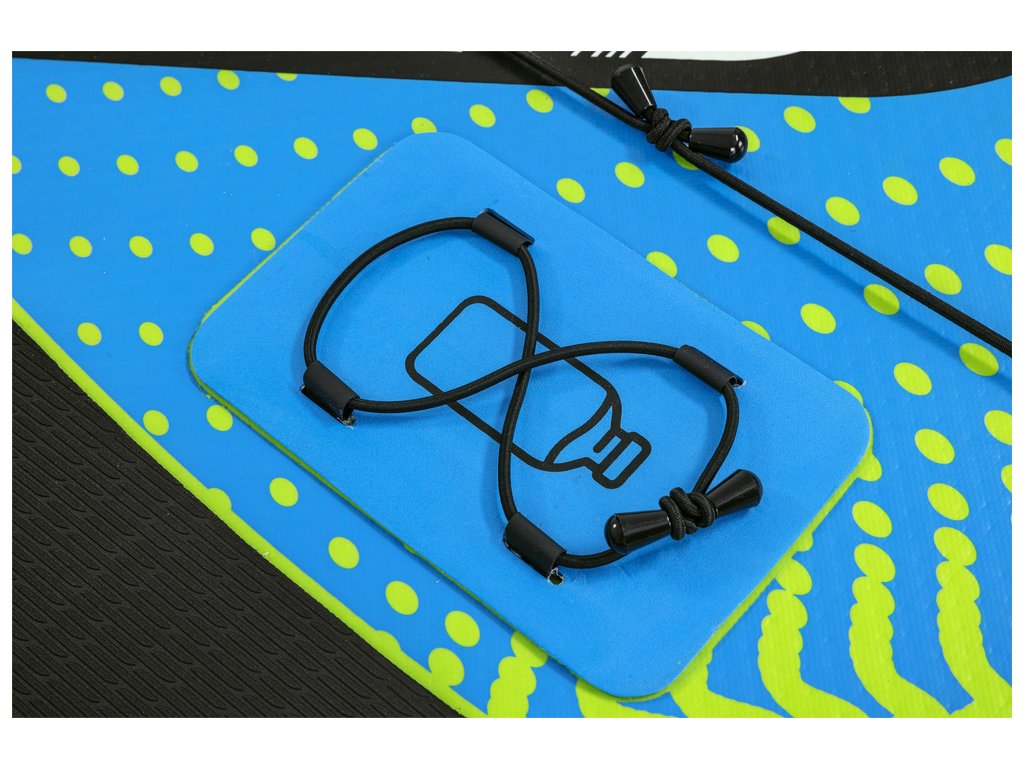 A paddleboard üvegtartóval rendelkezik, állítható gumiszalaggal.